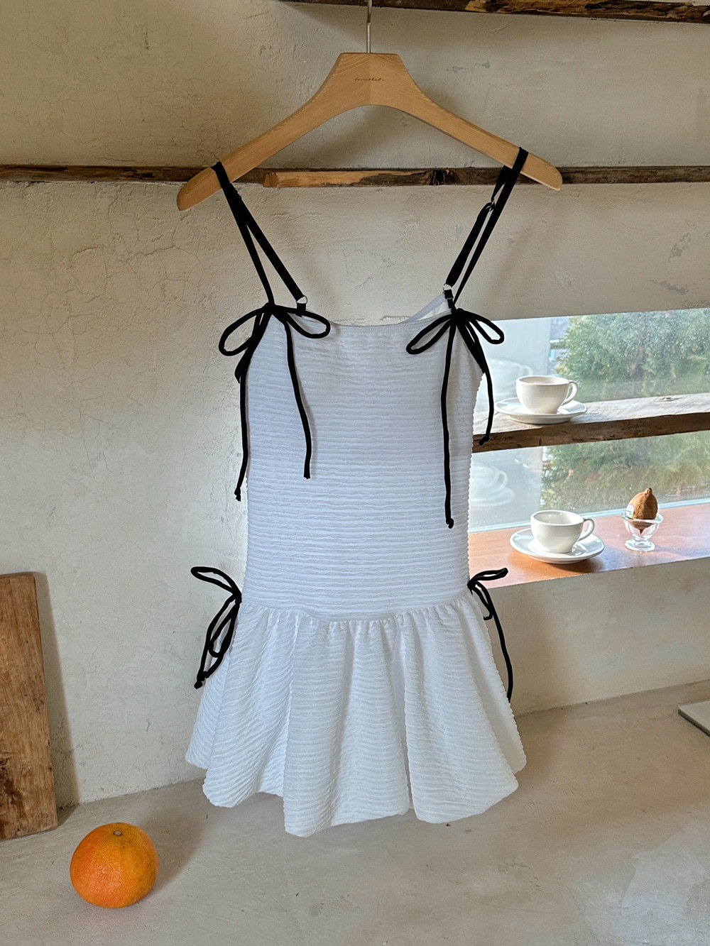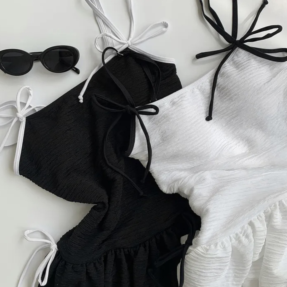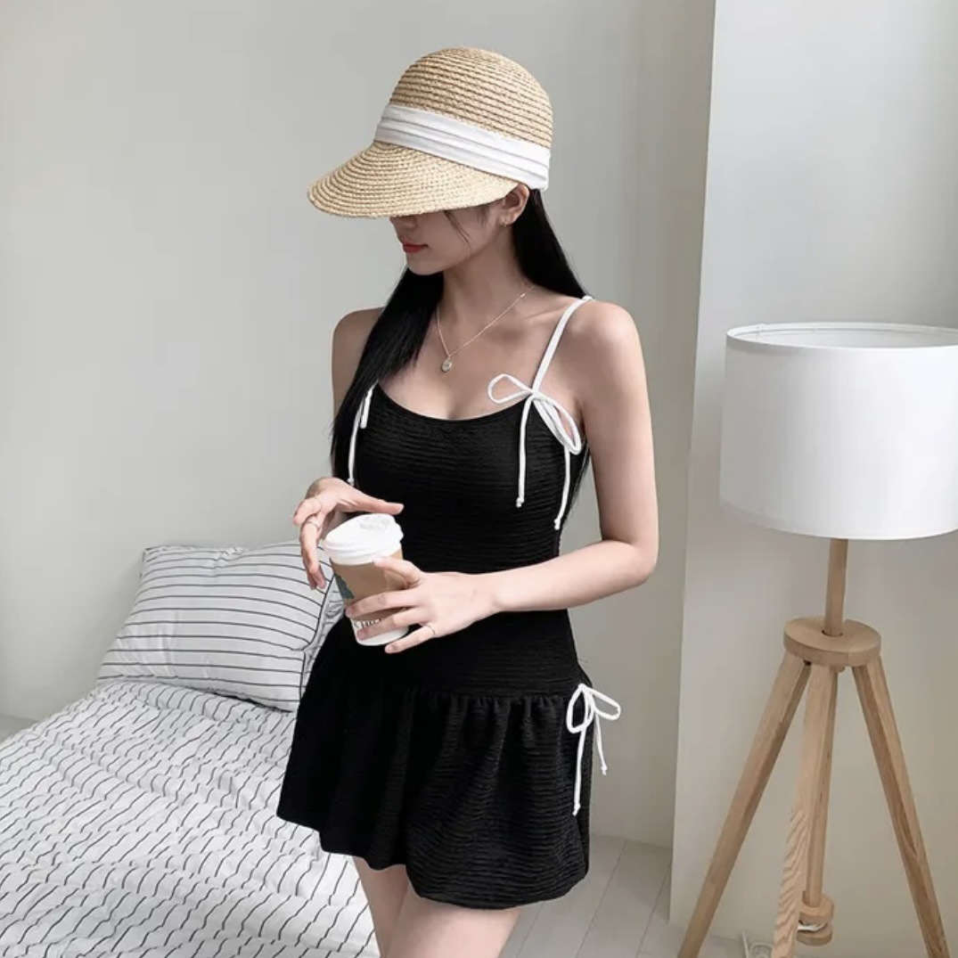 2025 새로운 발레 순수한 욕망 스타일 주름 활 끈 여성 원피스 스커트 온천 휴가 수영복 비키니스토어 가기