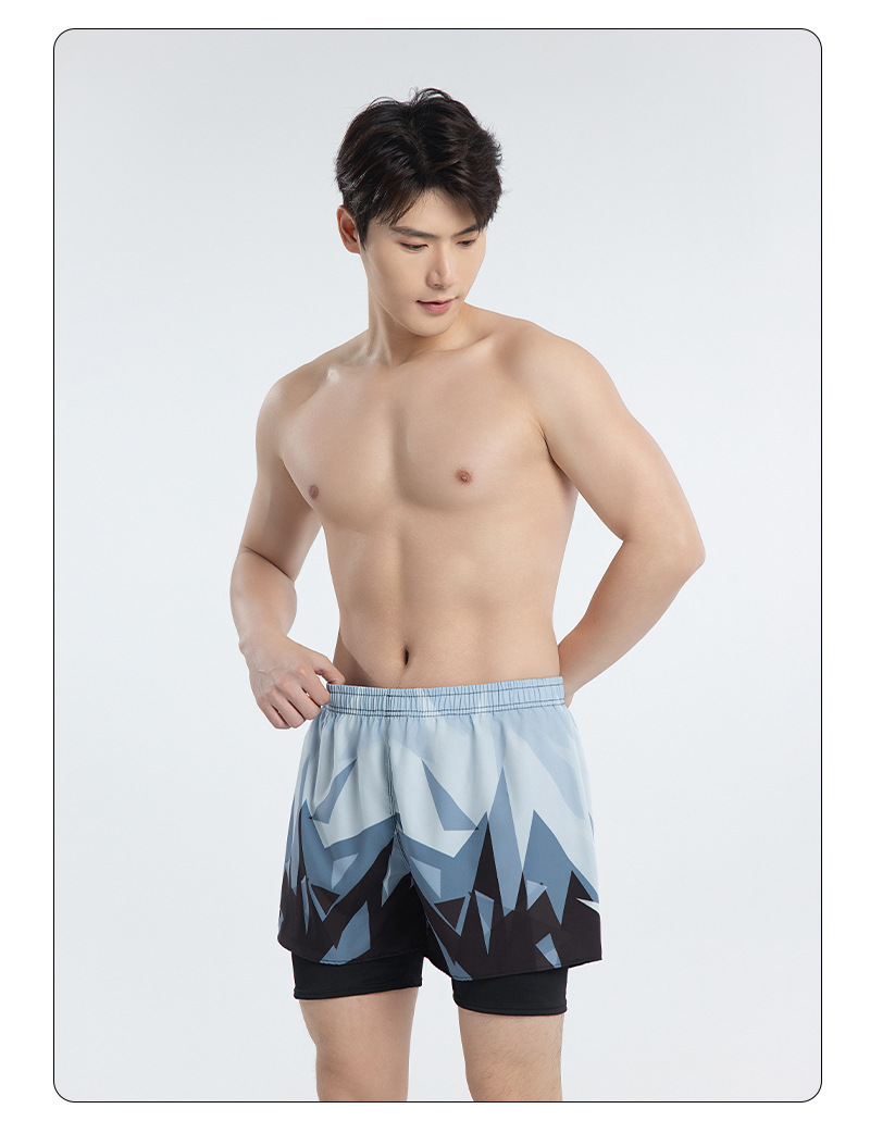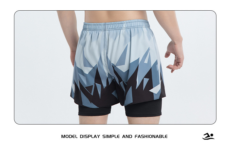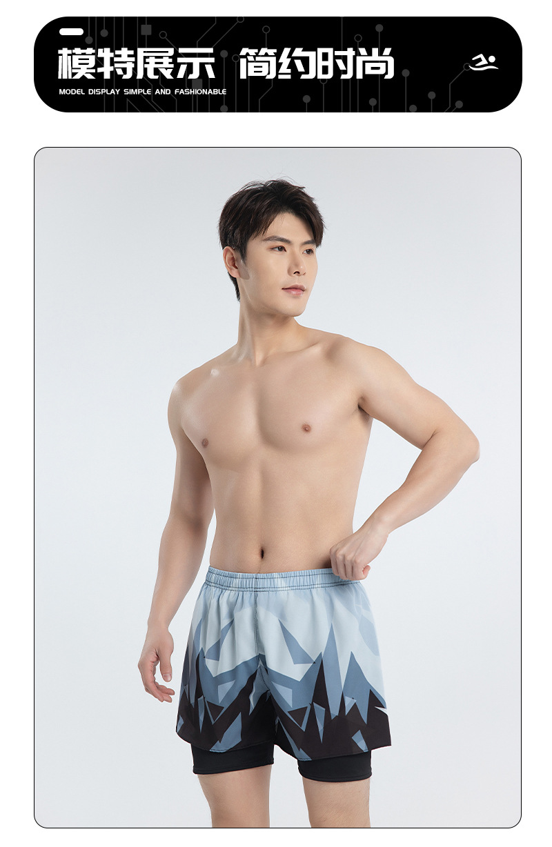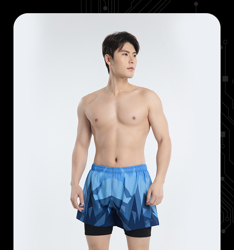 남자 더블 레이어 수영 트렁크 비치 트렁크 빠른 건조 안티 당혹감 수영 트렁크 남자 국경 폭발 플러스 사이즈 느슨한