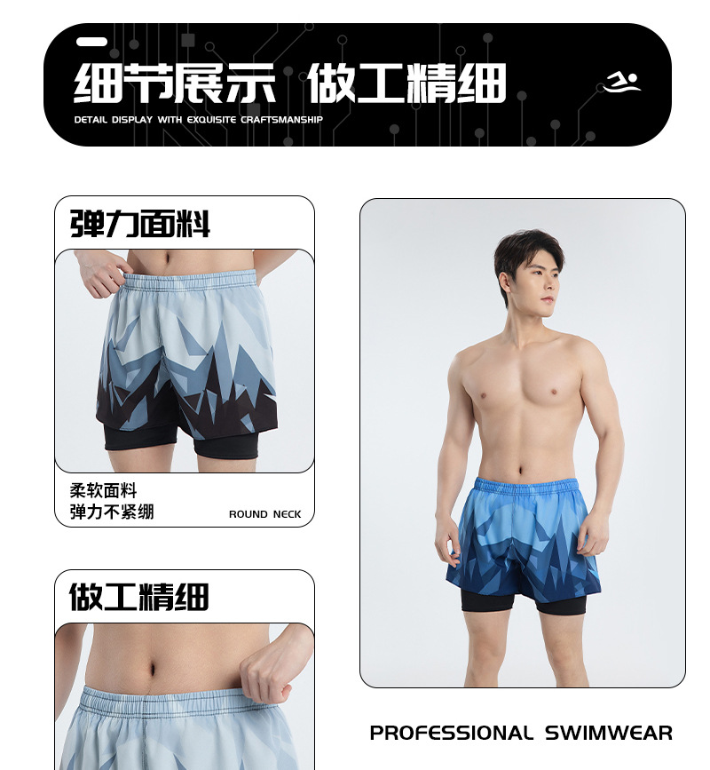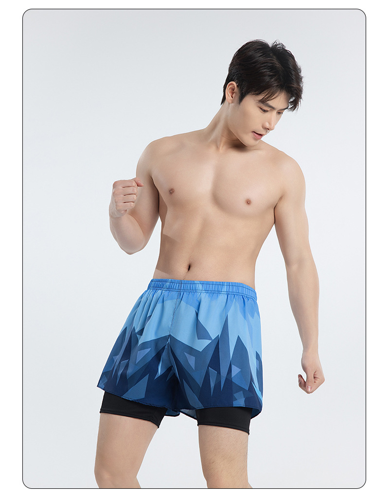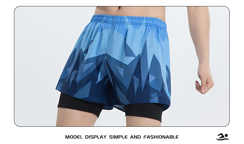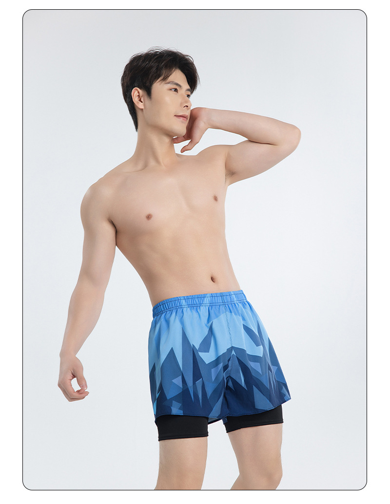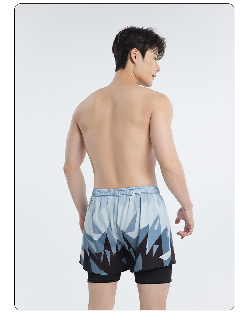 남자 더블 레이어 수영 트렁크 비치 트렁크 빠른 건조 안티 당혹감 수영 트렁크 남자 국경 폭발 플러스 사이즈 느슨한