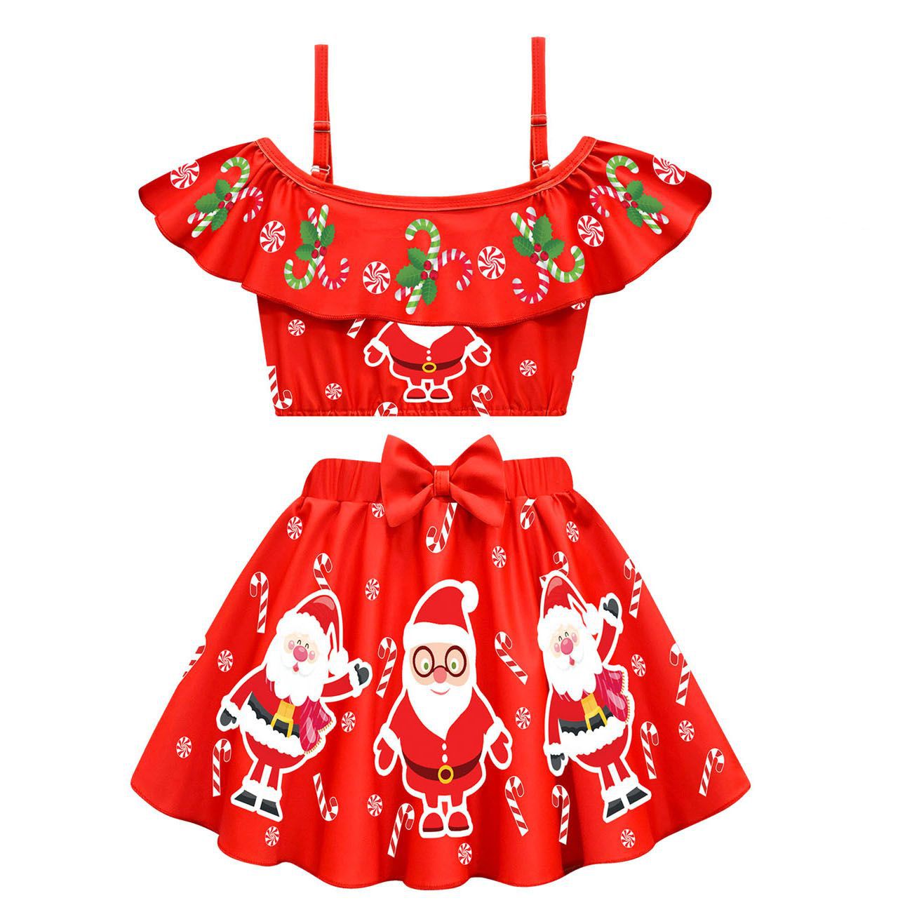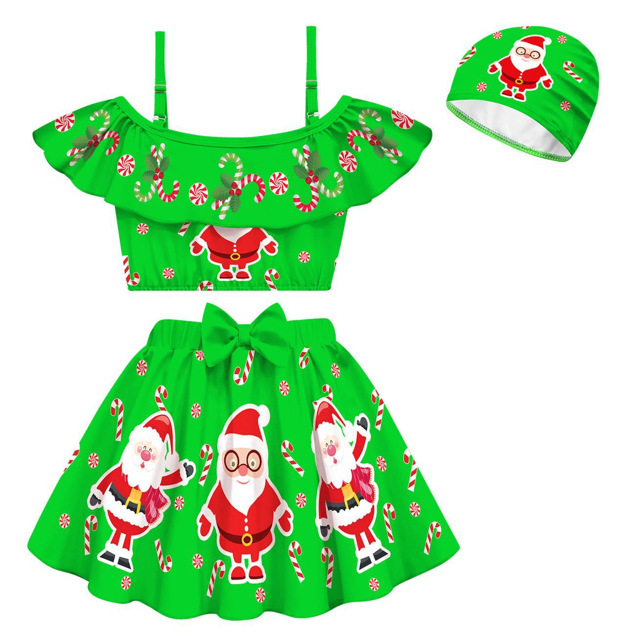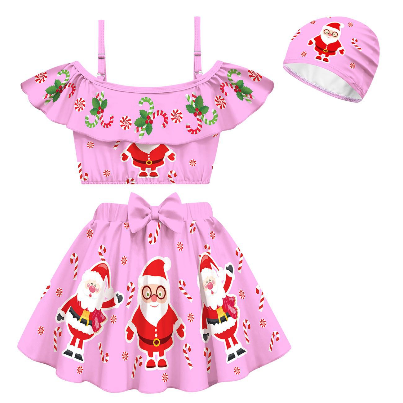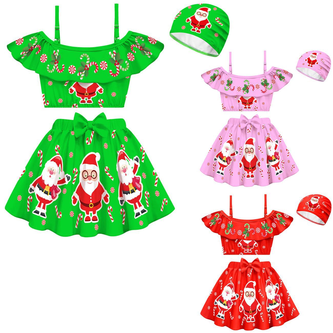 새로운 소녀 세트 수영복 수영복 모자 크리스마스 어린이 수영복 높은 스트레치 스트랩 2 피스 세트 20505스토어 가기