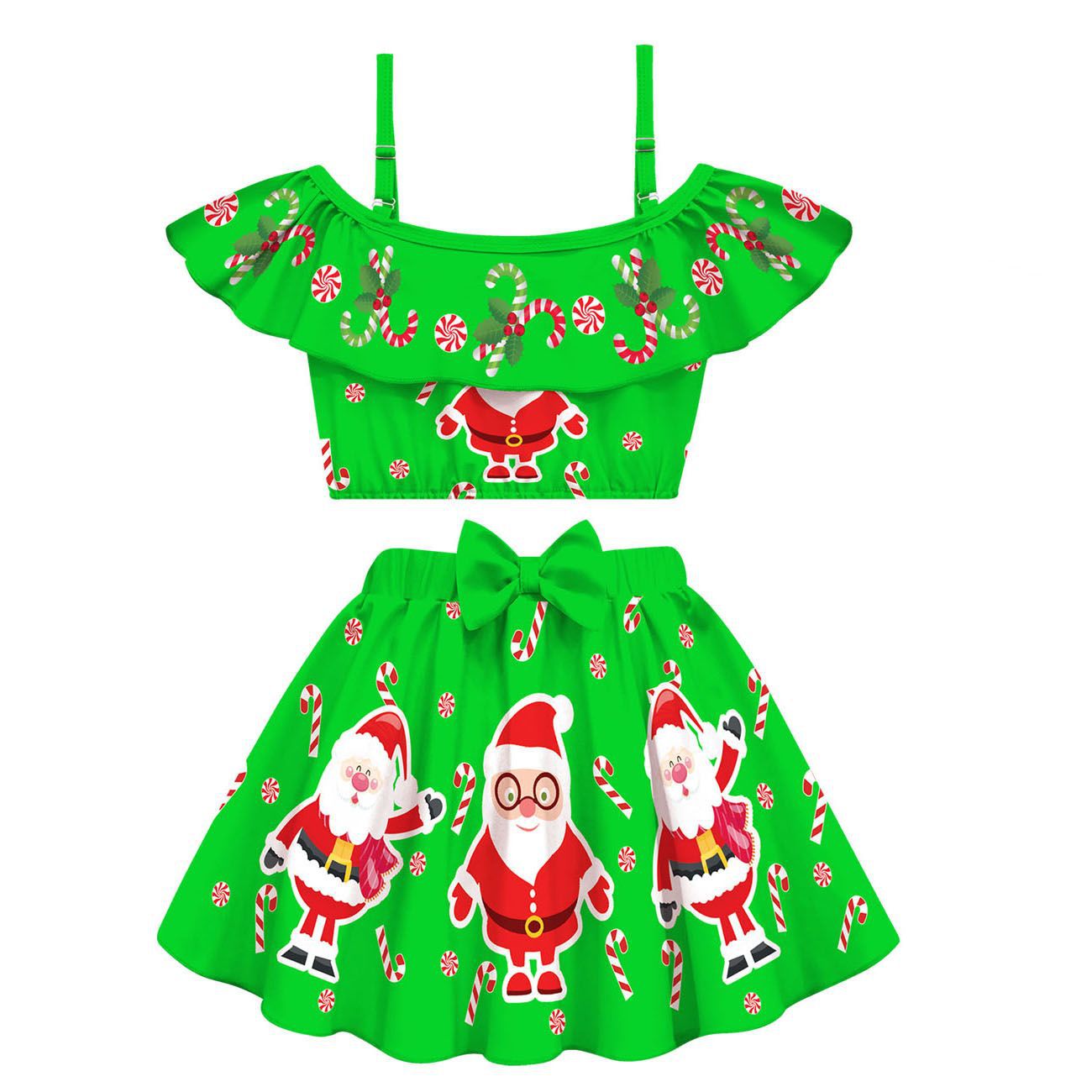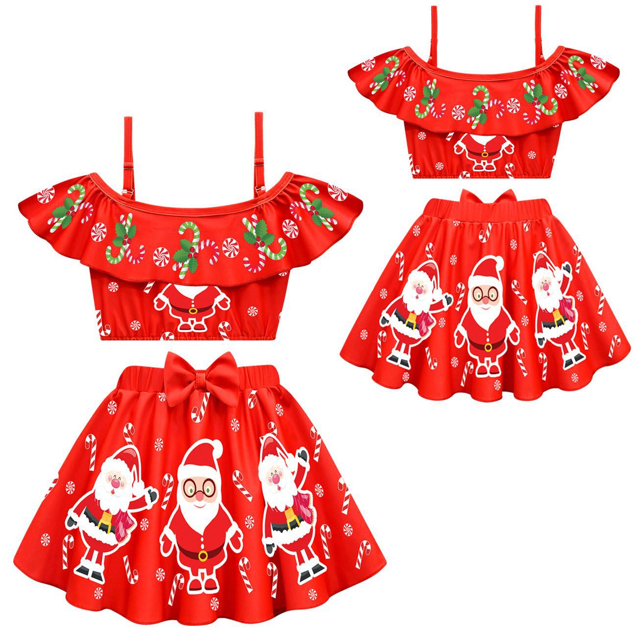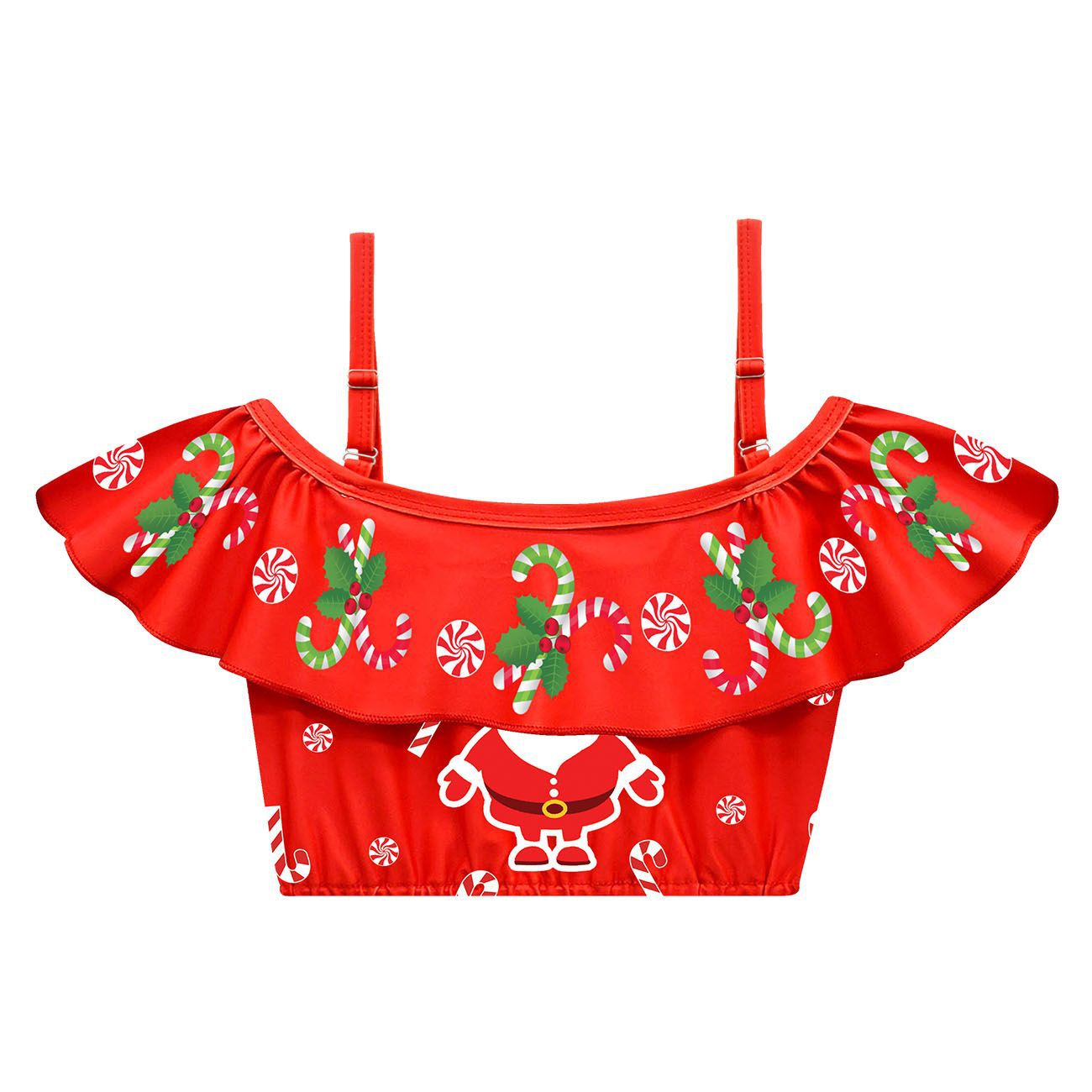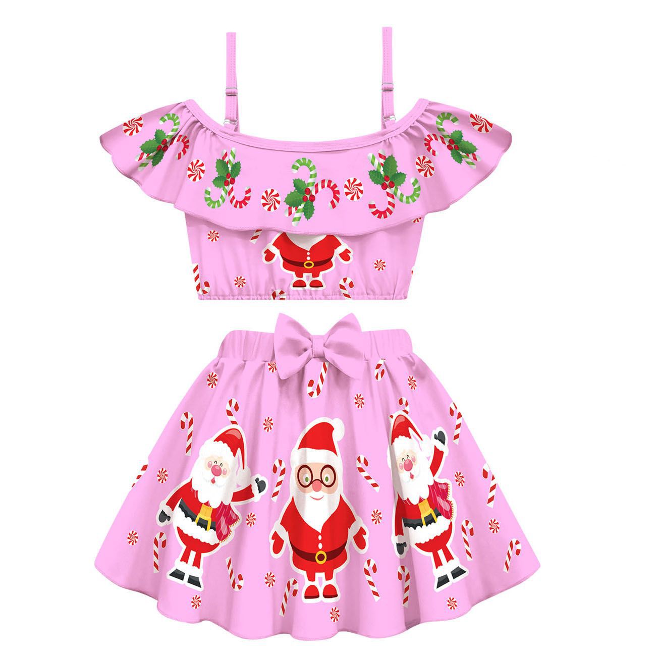 새로운 소녀 세트 수영복 수영복 모자 크리스마스 어린이 수영복 높은 스트레치 스트랩 2 피스 세트 20505스토어 가기