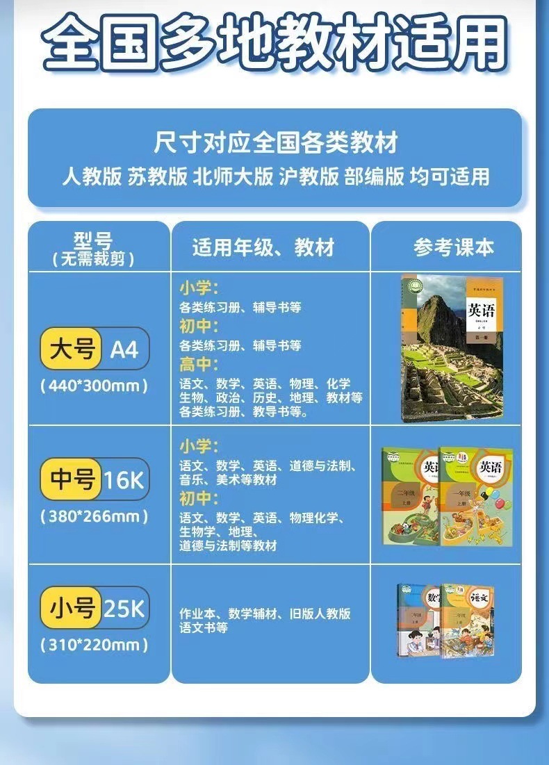 제조업체는 두꺼운 투명 책 표지 16K 자체 접착 초등 및 중등 학교 학생들이 PP 책 필름 A4 활동 책 표지를 포장합니다.스토어 가기