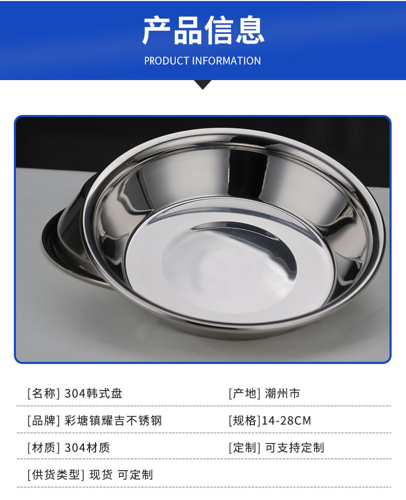 국경 간 304 한국 접시 스테인레스 스틸 깊은 접시 호텔 접시 접시 홈 주방 식기 접시 공장 공급스토어 가기