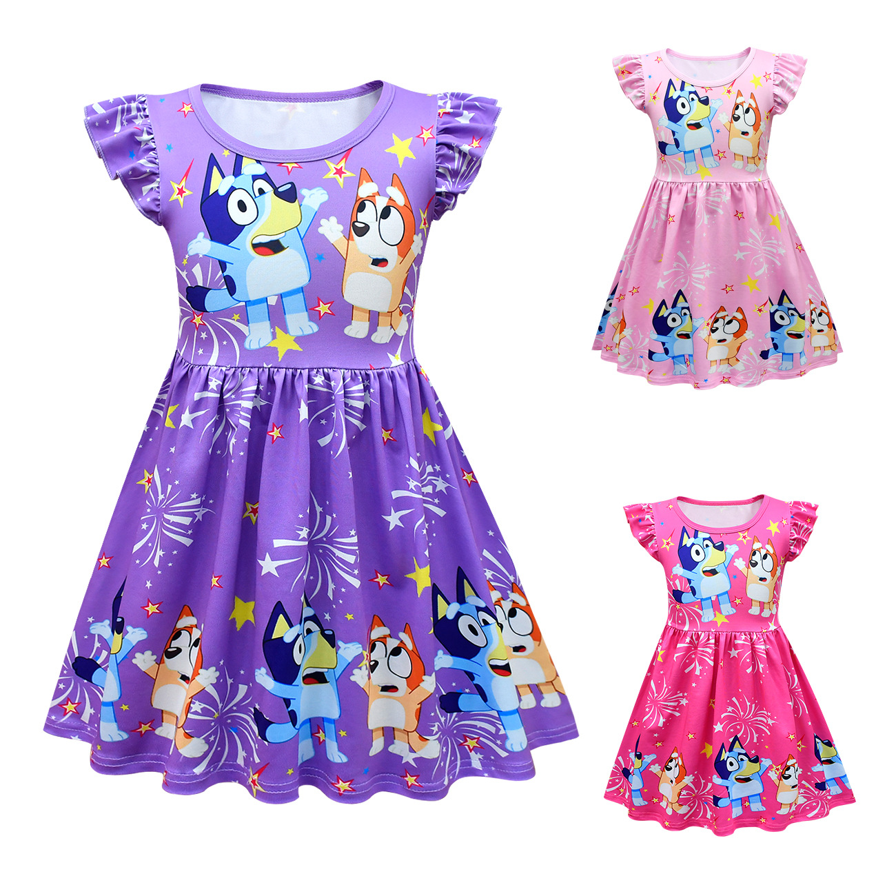 여름 어린이 원피스 소녀 인형 원피스 비행 슬리브 원피스 A-라인 원피스 80479