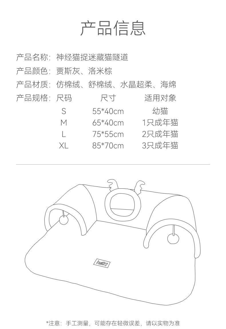 국경 간 폭발 2024 가을과 겨울 고양이 엘크 숨바꼭질 고양이 터널 놀이 한 개의 터널 고양이 둥지 애완 동물 둥지스토어 가기
