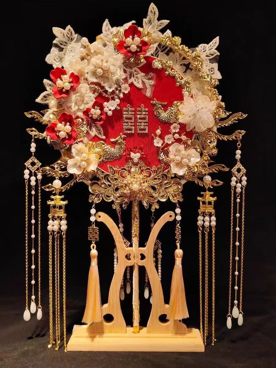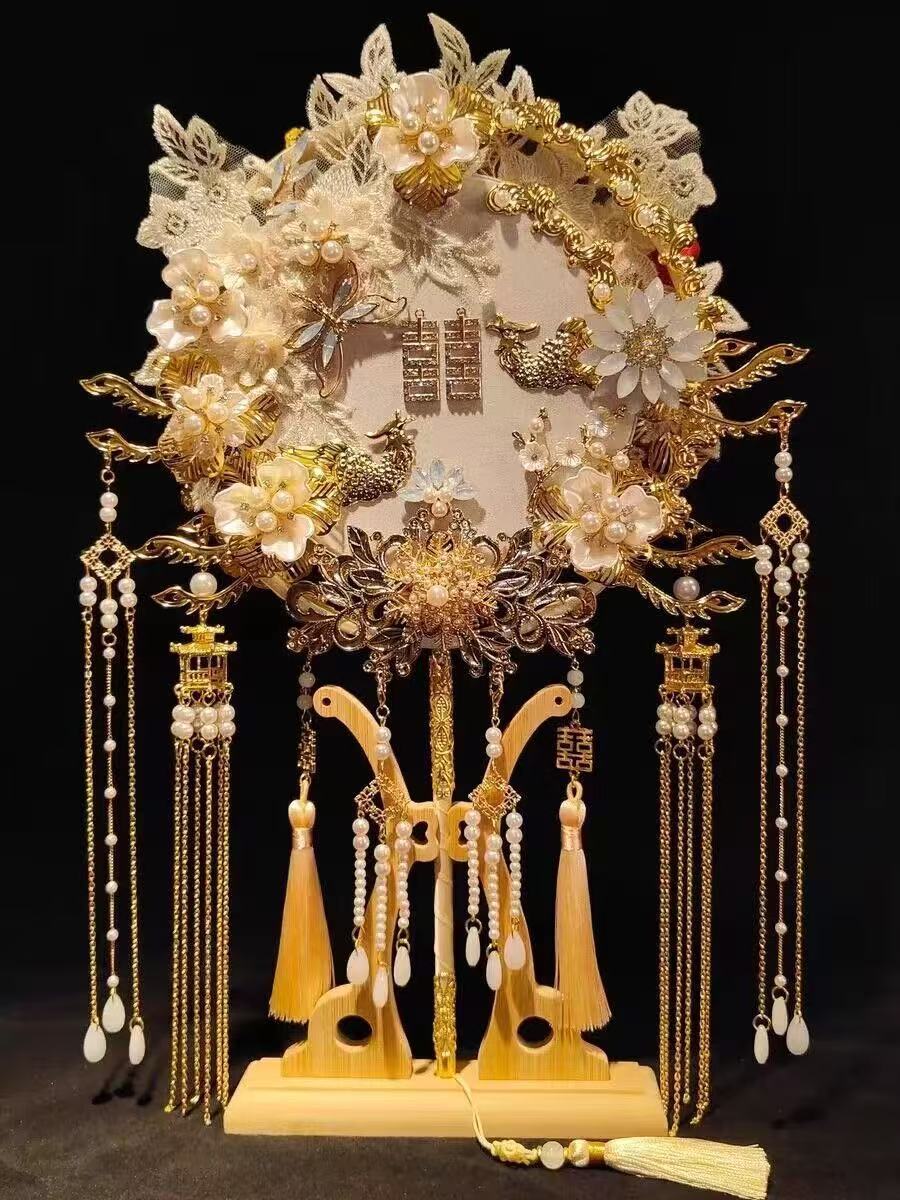 2 색 양면 중공업 라운드 팬 신부 웨딩 diy 소재 골동품 수제 xiuhe 고급 얼굴 커버 팬