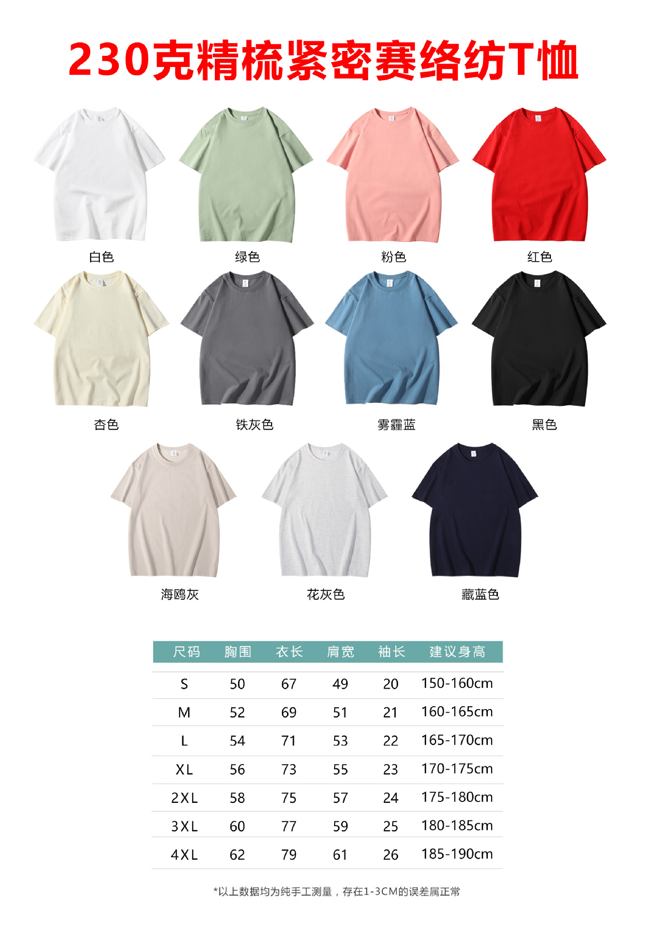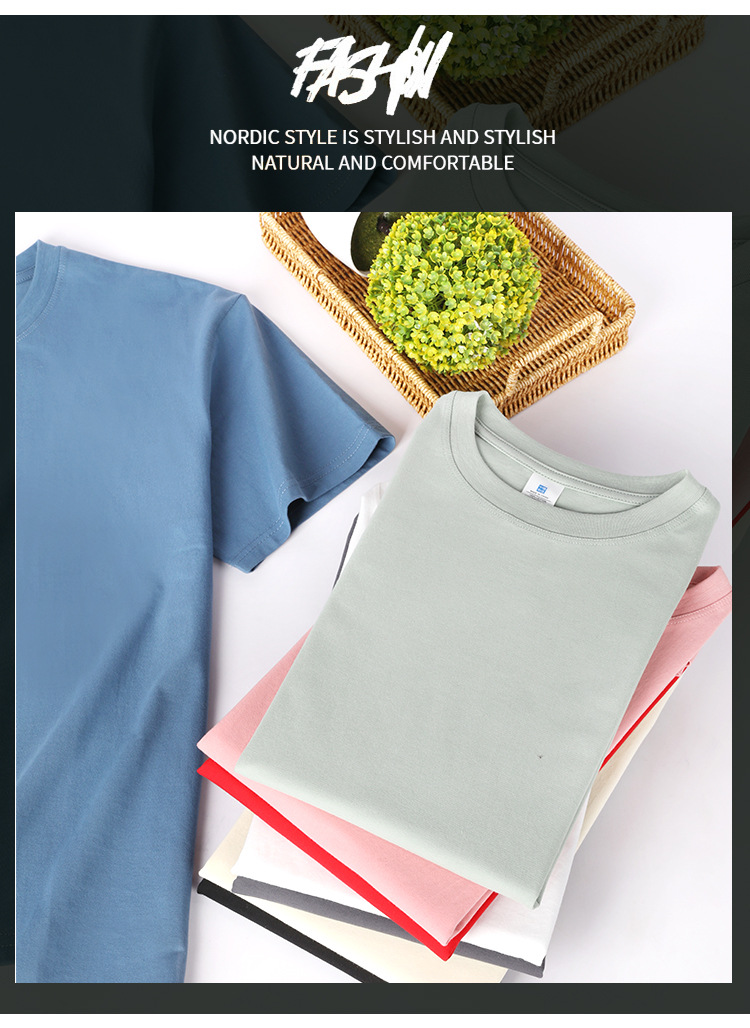 여름 헤비급 230g 단색 어깨 티셔츠 느슨한 남성 광고 셔츠 맞춤형 인쇄 가능한 자수스토어 가기