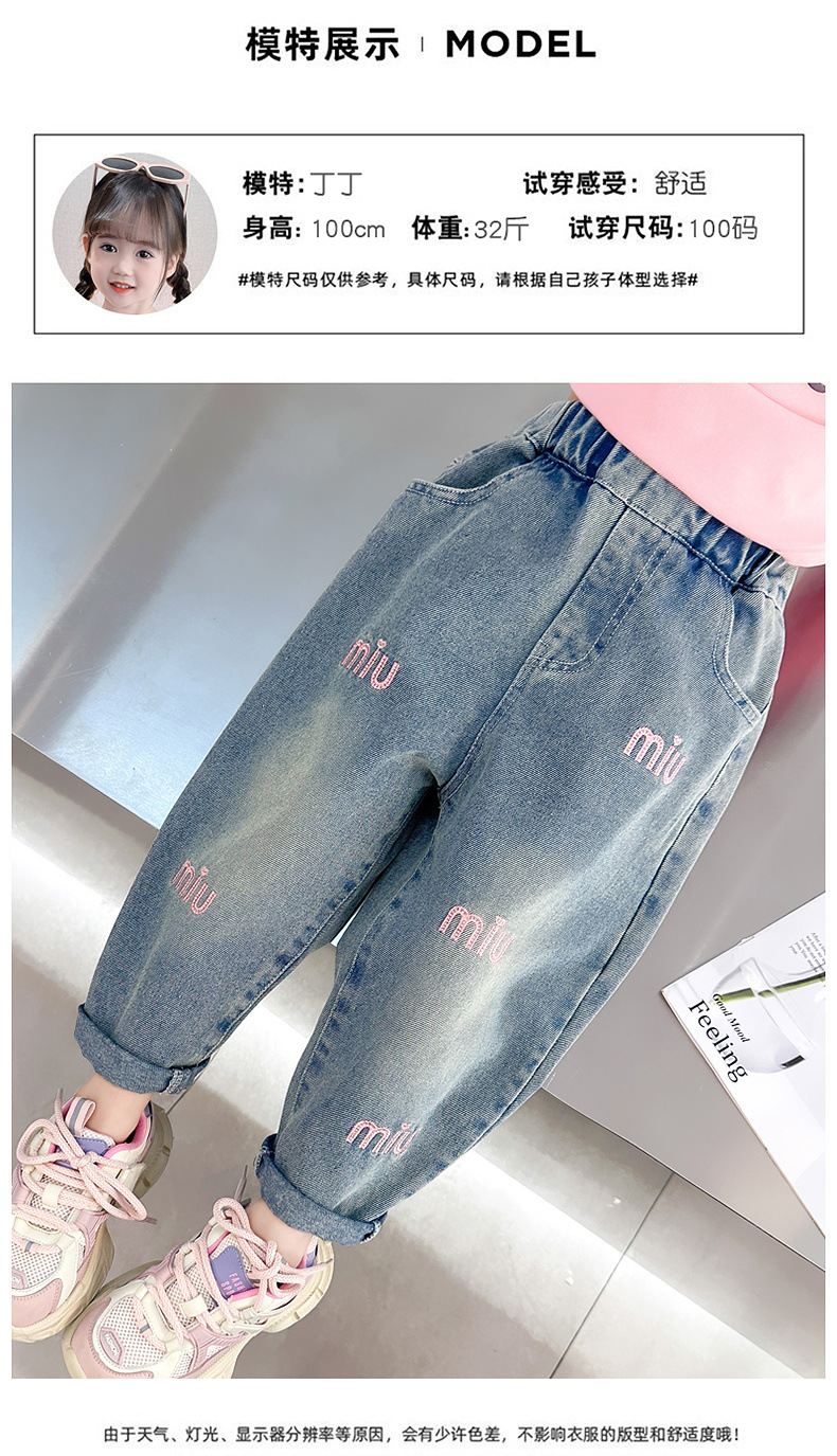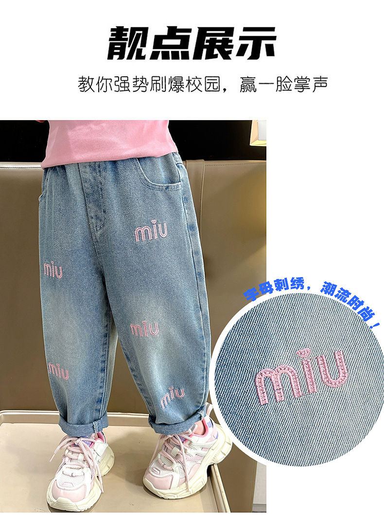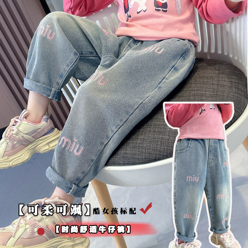 소녀 청바지 봄과 가을 2025 새로운 느슨한 서양식 어린이 토레 바지 큰 어린이 소녀 바지