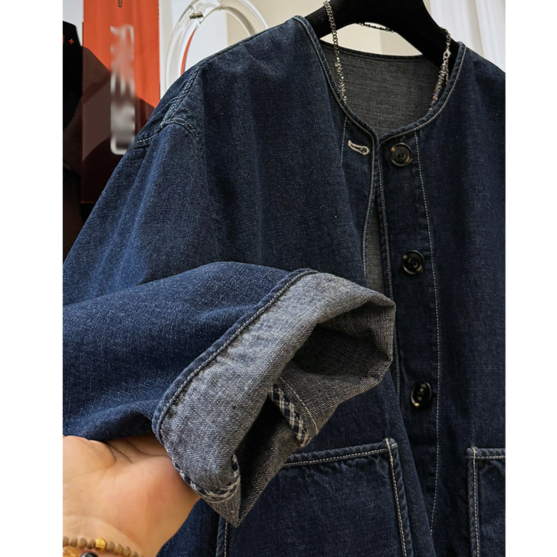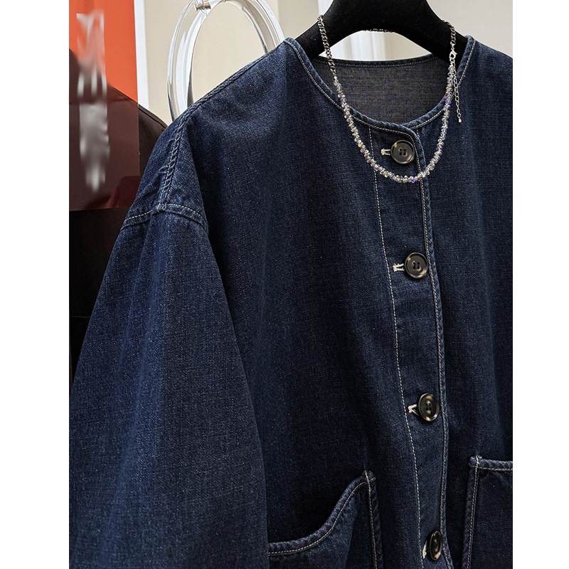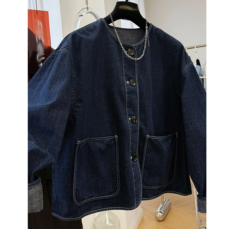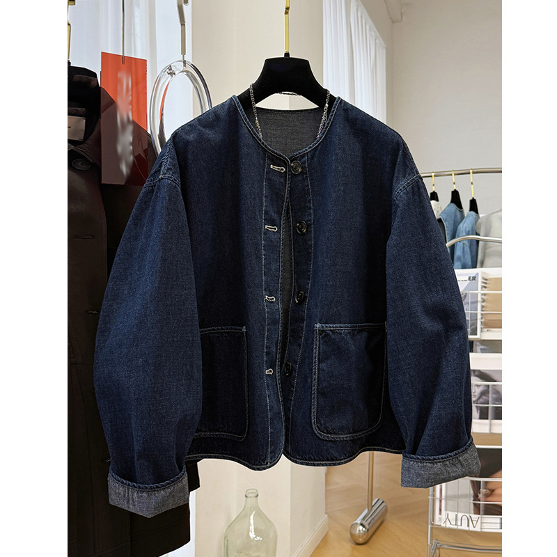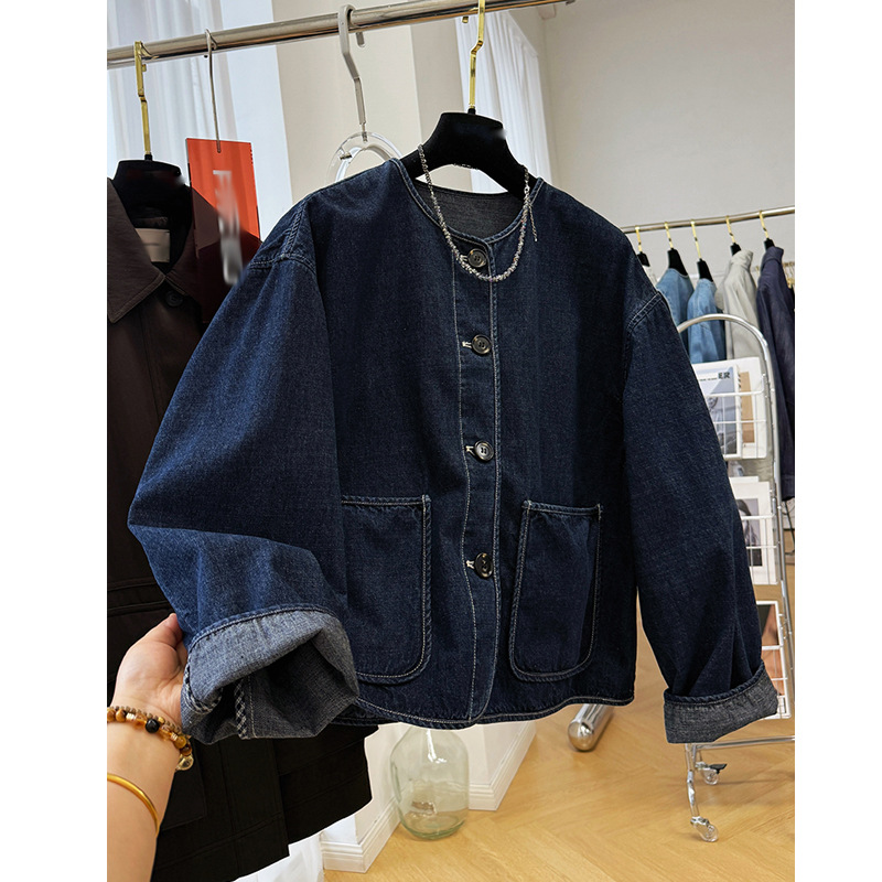 2025 슈퍼 핫 뉴 하이 JI Du 슈퍼 잘 생긴 라운드 넥 캐주얼 데님 코트 여성의 봄과 가을 작은 재킷