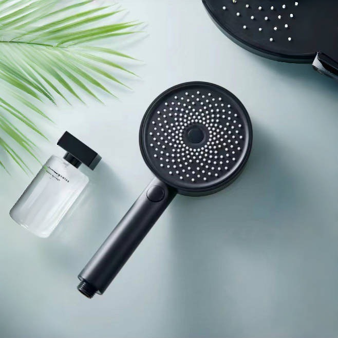 • 원형 도넛 3가지 기능 핸드헬드 샤워기 (무광 블랙 화이트 실리콘 분사)