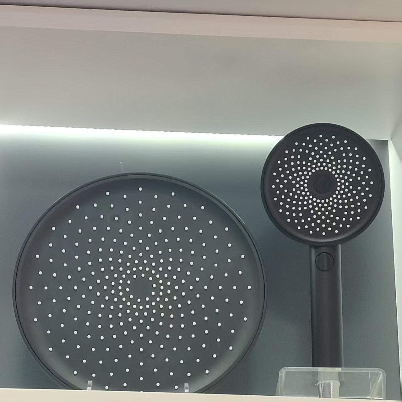 • 라운드 도넛 3가지 기능 핸드 샤워기 + 10inch 탑 스프레이 세트(올 매트 블랙 및 화이트 실리콘 배출구)