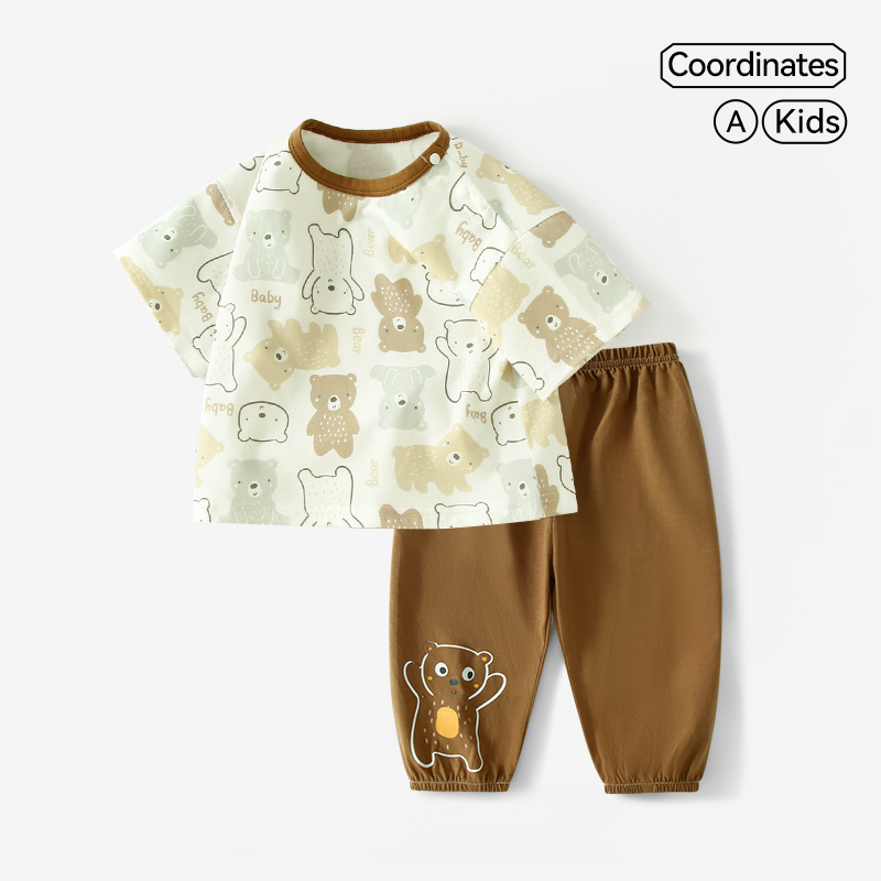 아기의 반소매 바지 세트 소년 여름 얇은 여성 아기 옷 반소매 어린이 여름 투피스 아동복스토어 가기