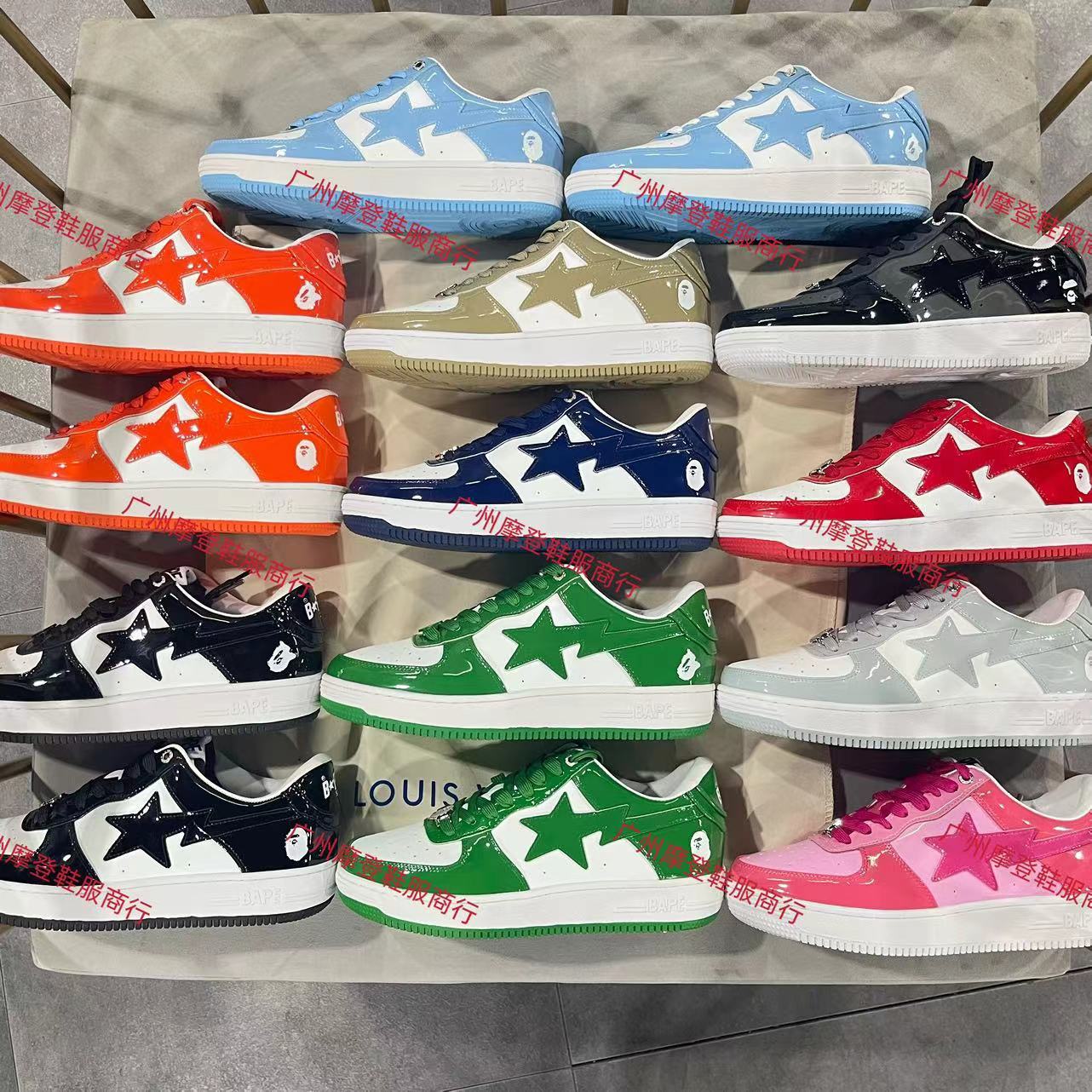 BAPESTA SK8 DUNK 흑백 멀티 컬러 페이턴트 가죽 트렌디 커플 바이브 로우탑 캐주얼 스니커즈스토어 가기