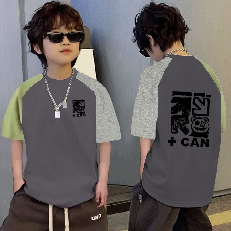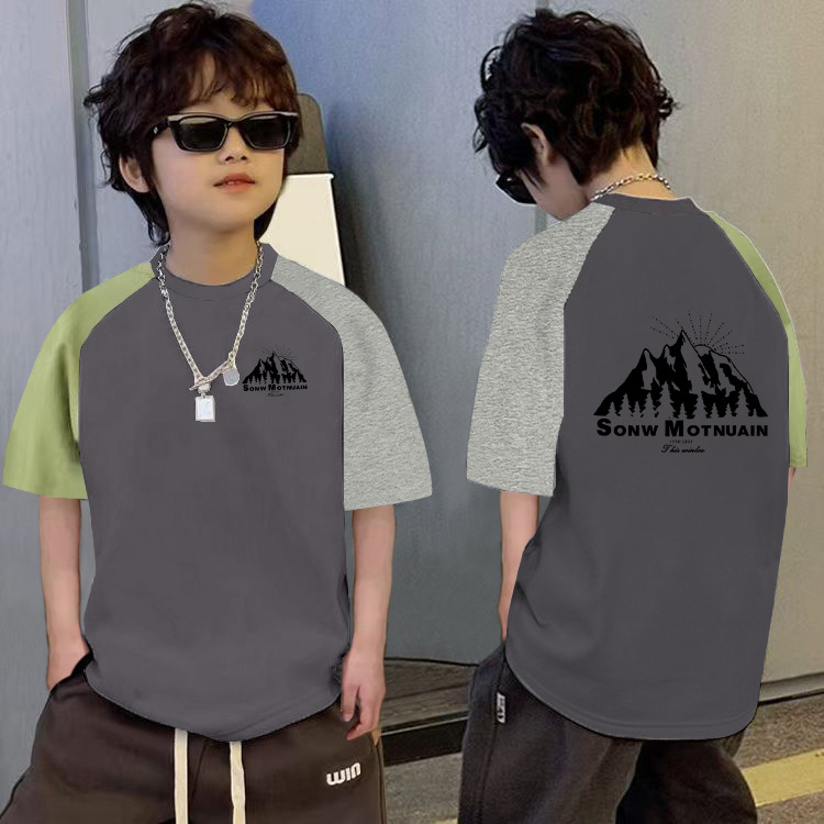 남학생 캐주얼 바느질 반팔 티셔츠 여름 신작 중대형 아동복 6-12 세 잘 생긴 소년 명암 컬러 베이스 셔츠스토어 가기