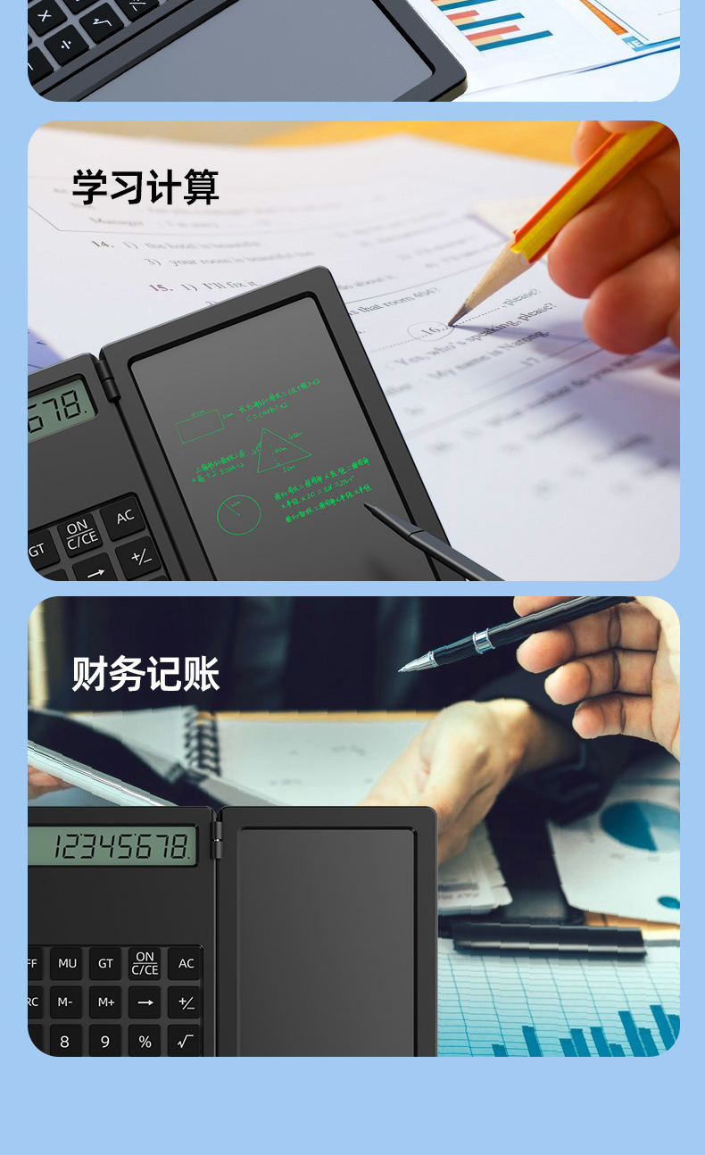 AONMI 스케치패드 계산기 어린이 장난감 글쓰기 보드 LCD 필기 보드 사이버 연예인 접기 2-in -1