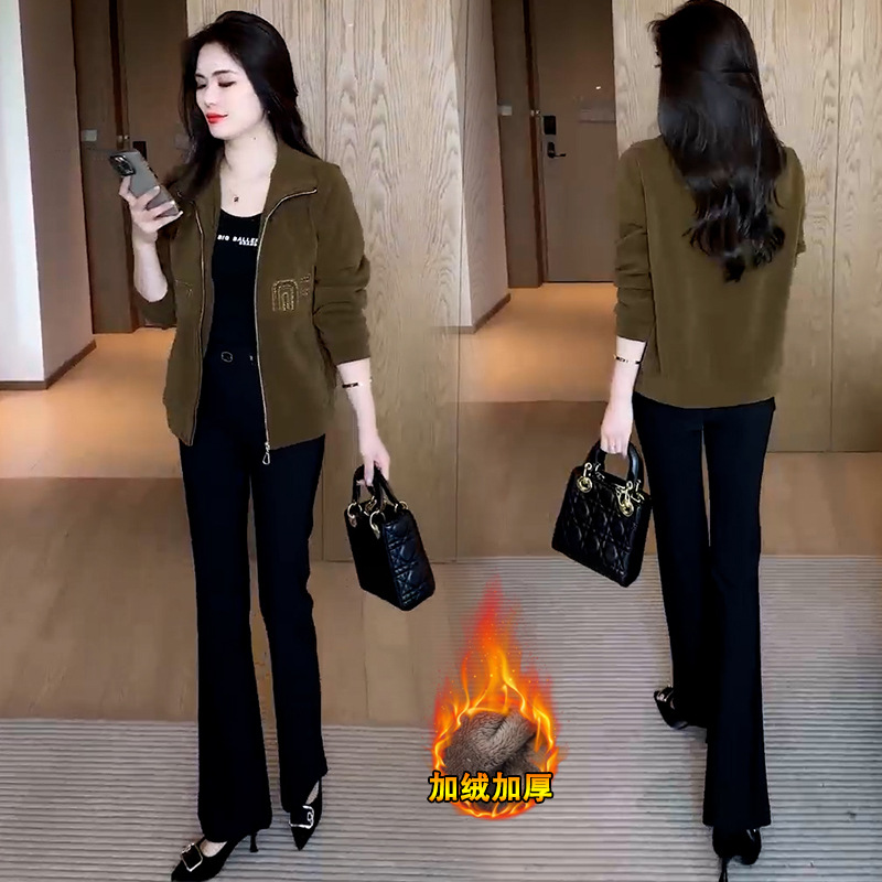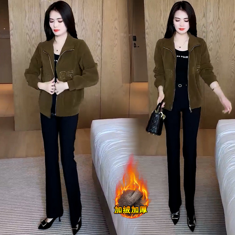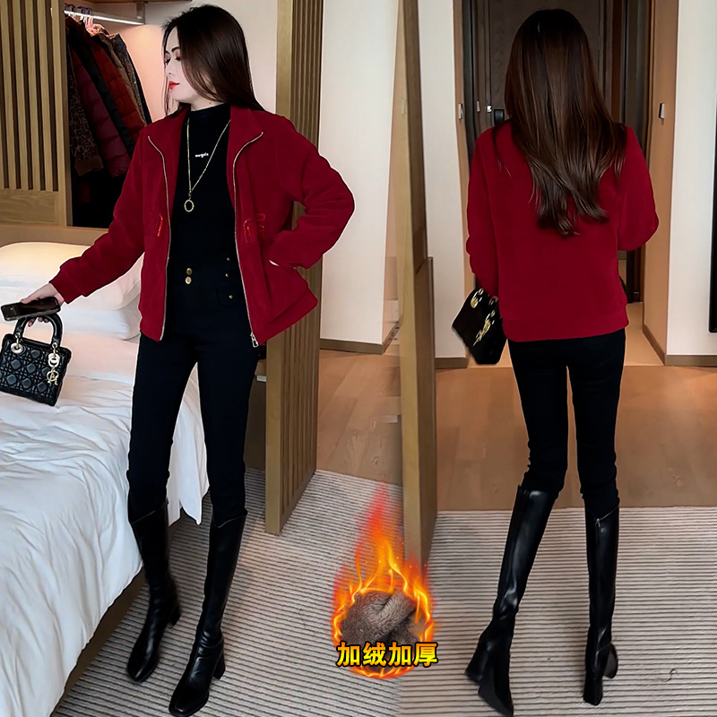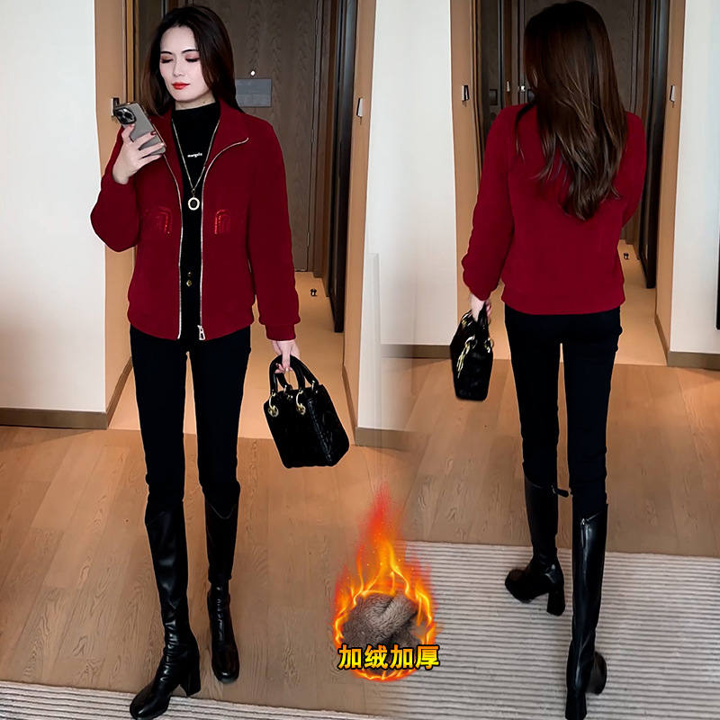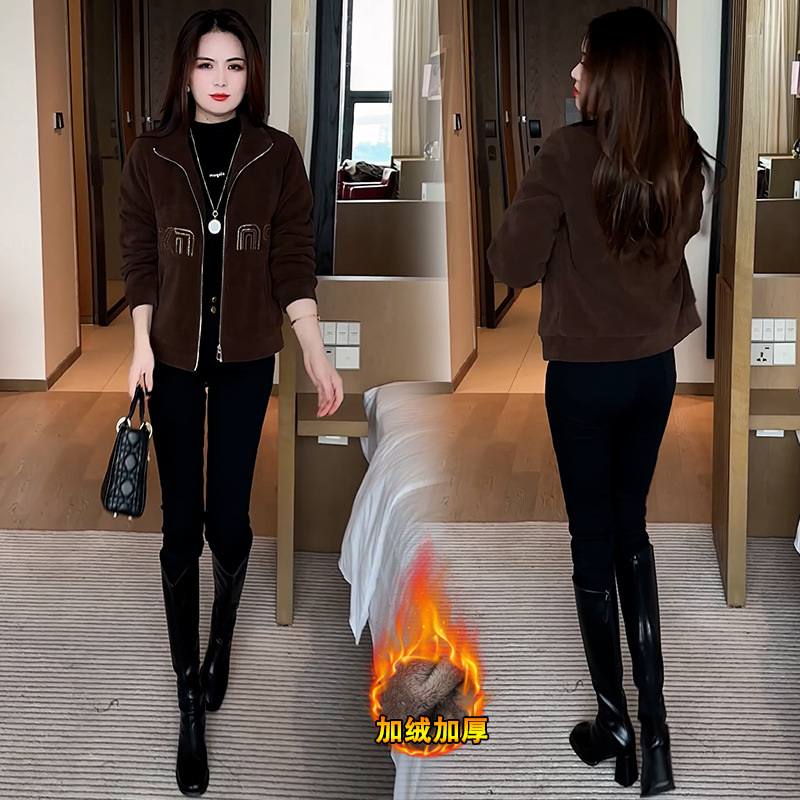 패션 캐주얼 쇼트 코트 여성의 2025 가을과 겨울 새로운 느슨한 배꼽 커버 슬리밍 올 매치 스몰 재킷 탑