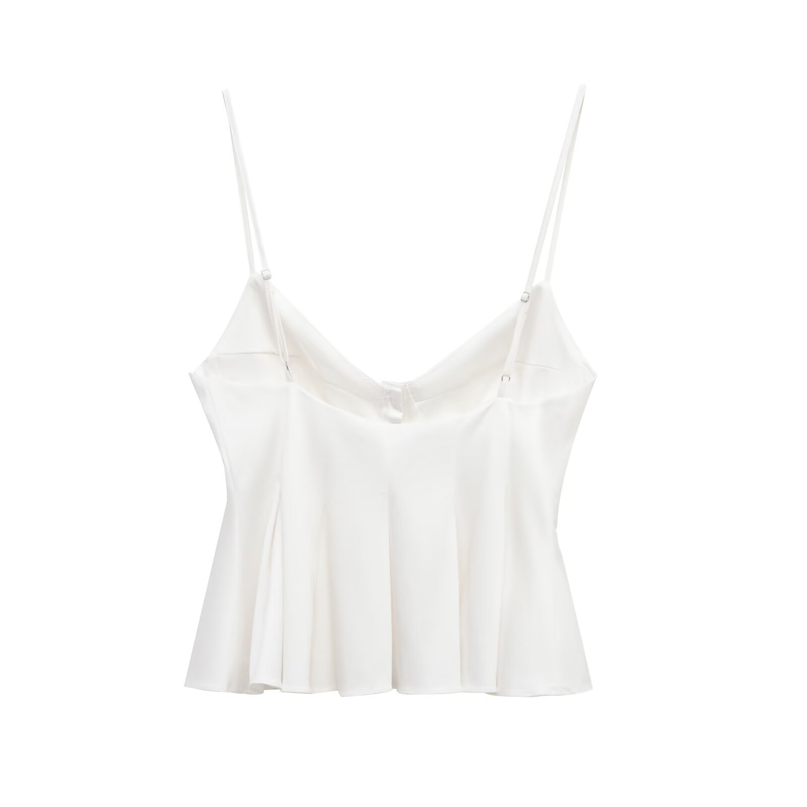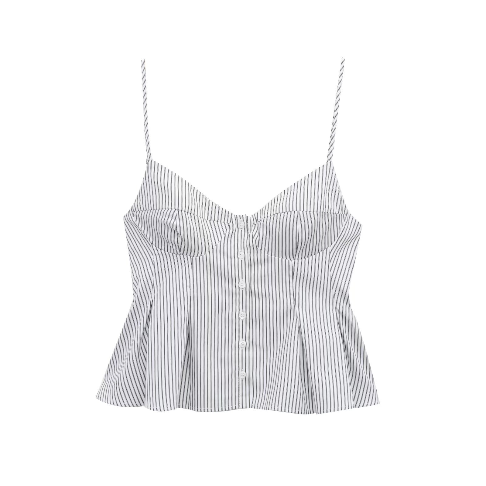 2025 년 봄 새로운 유럽과 미국의 국경 간 여성 의류 거리 패션 작은 주름 포플린 서스펜더 톱 w063 9275
