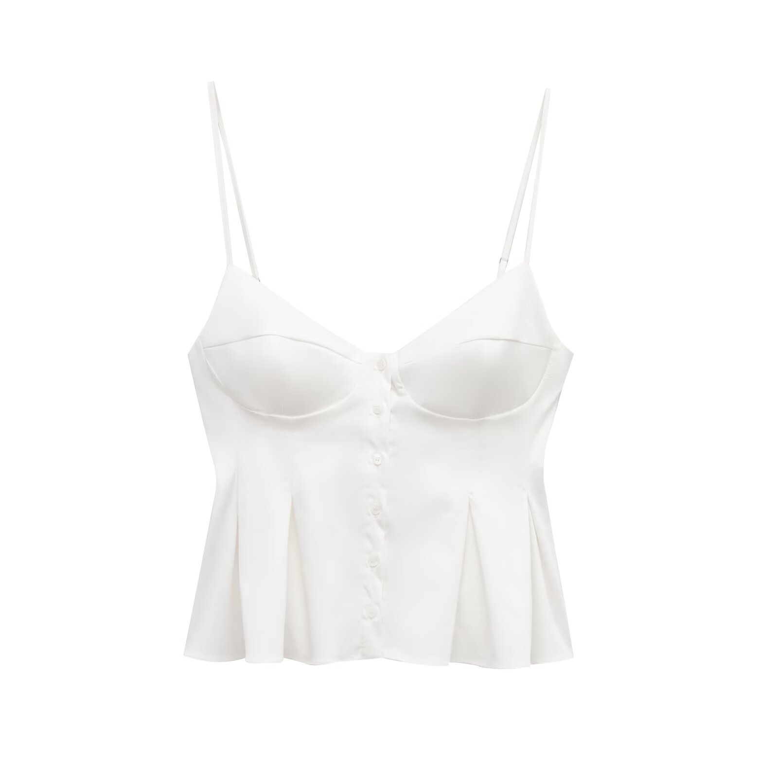 2025 년 봄 새로운 유럽과 미국의 국경 간 여성 의류 거리 패션 작은 주름 포플린 서스펜더 톱 w063 9275스토어 가기