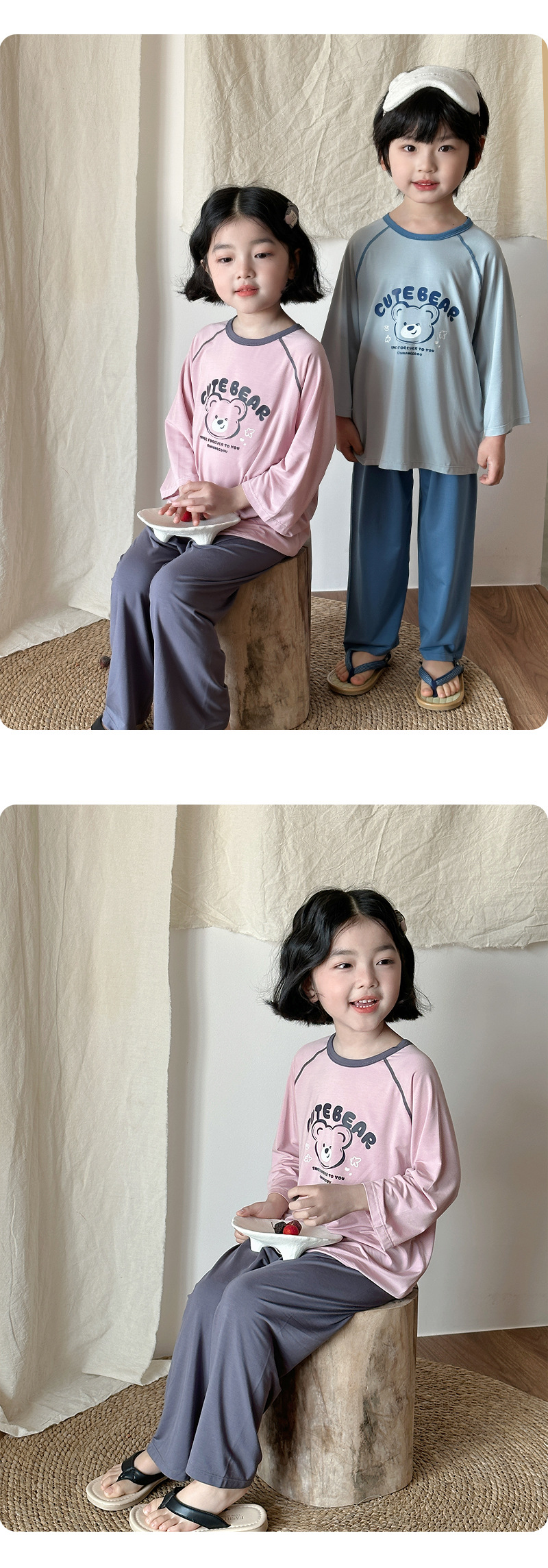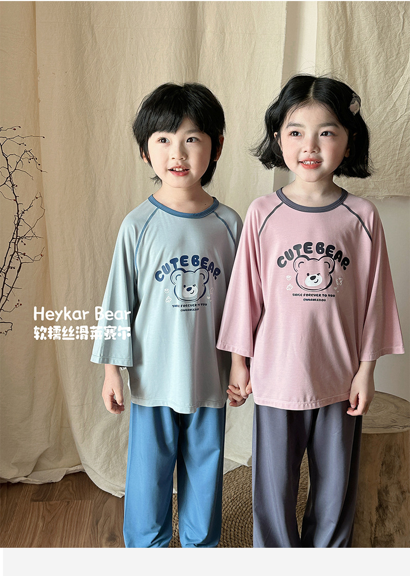 검은 커피 곰 어린이 잠옷 2025 봄과 여름 새로운 한국 만화 캐주얼 소년 소녀 7 점 홈 옷