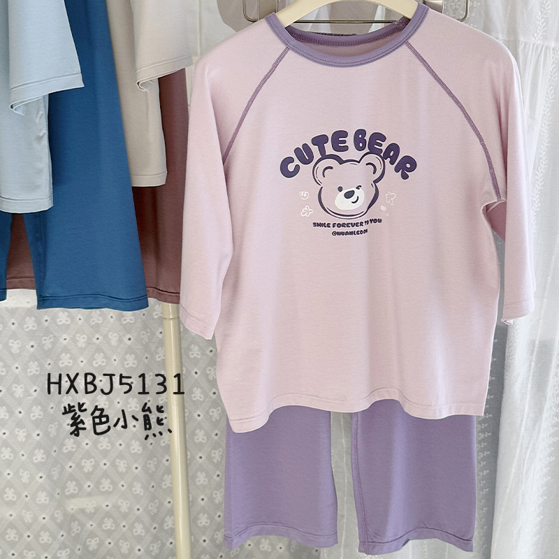 검은 커피 곰 어린이 잠옷 2025 봄과 여름 새로운 한국 만화 캐주얼 소년 소녀 7 점 홈 옷스토어 가기