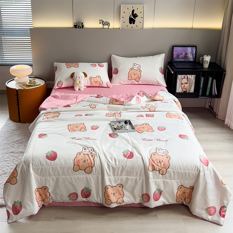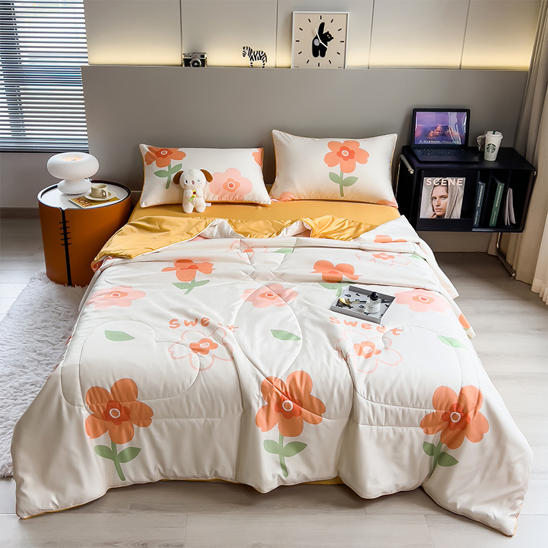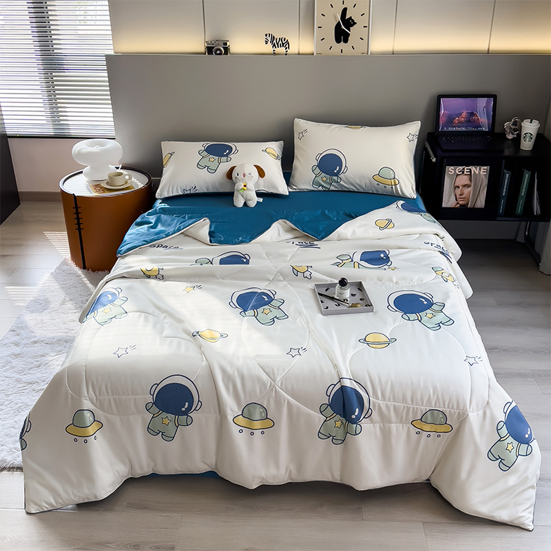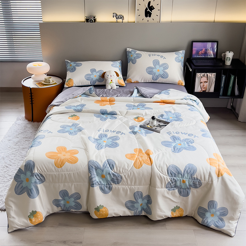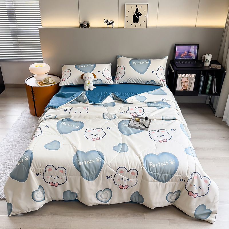 공장 도매 여름 이불 에어컨 이불 싱글 더블 얇은 이불 선물 봄 및 여름 이불 코어 기계 빨 수있는 4 피스 세트