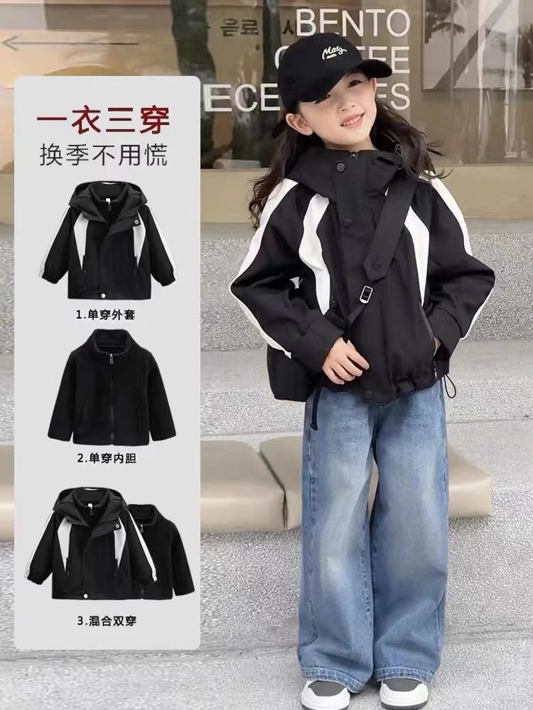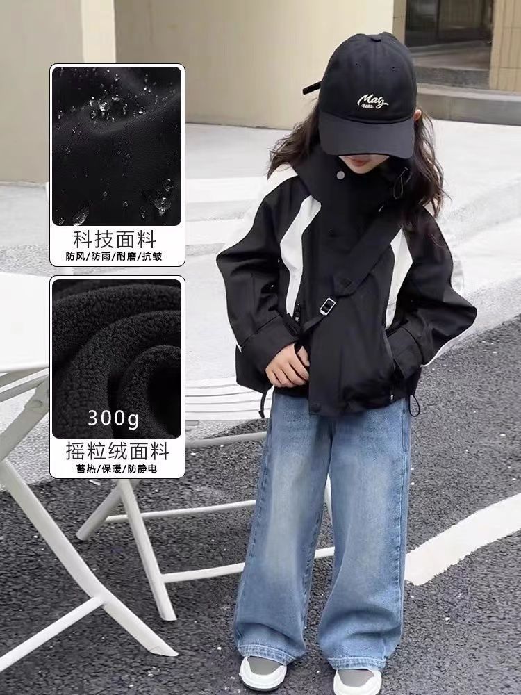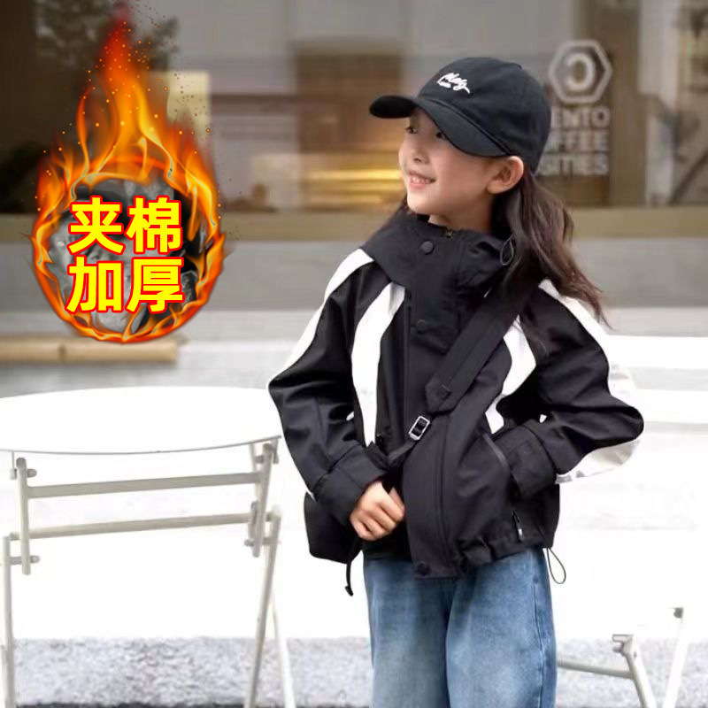 소녀의 충전 옷 봄과 가을 2025 새로운 소녀의 큰 소년 스타일리시 코트 어린이 봄 착용 얇은 재킷