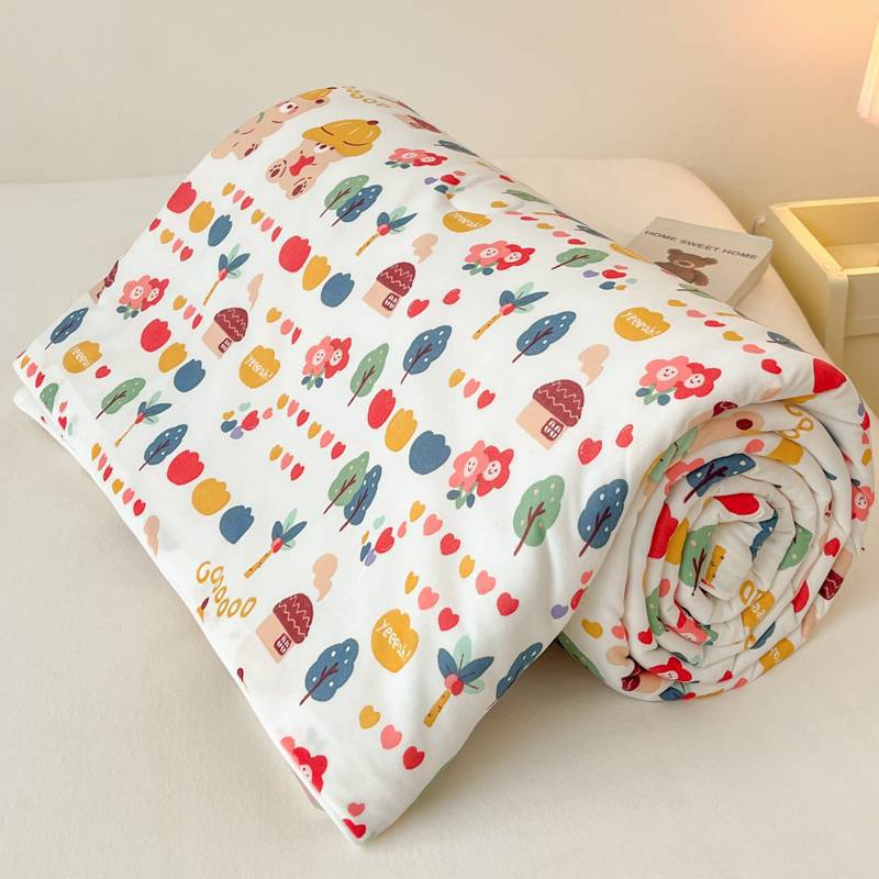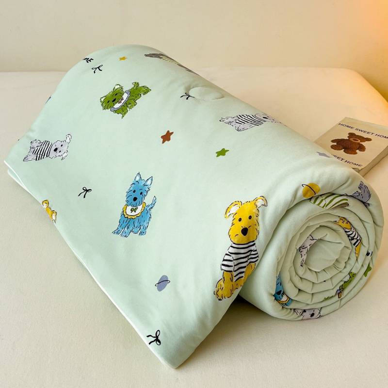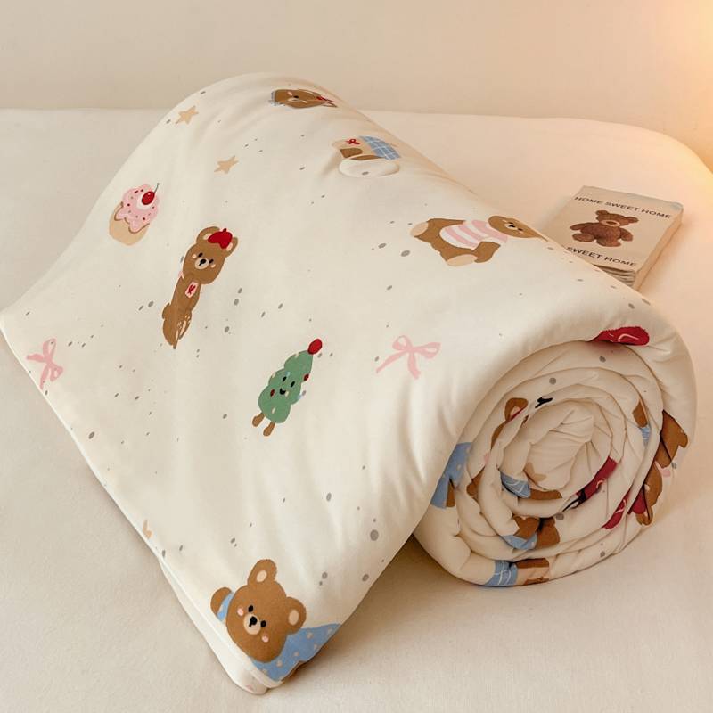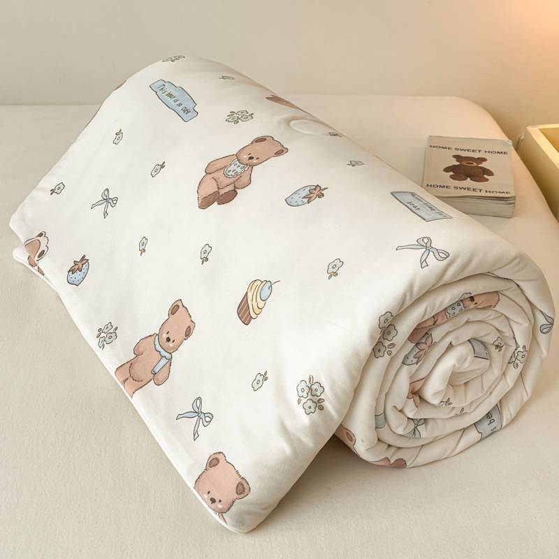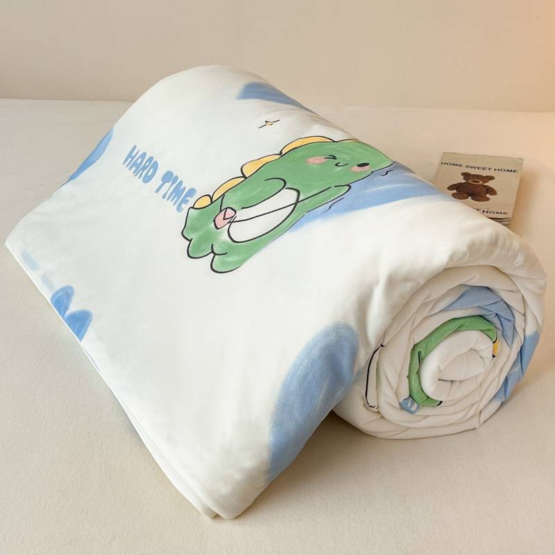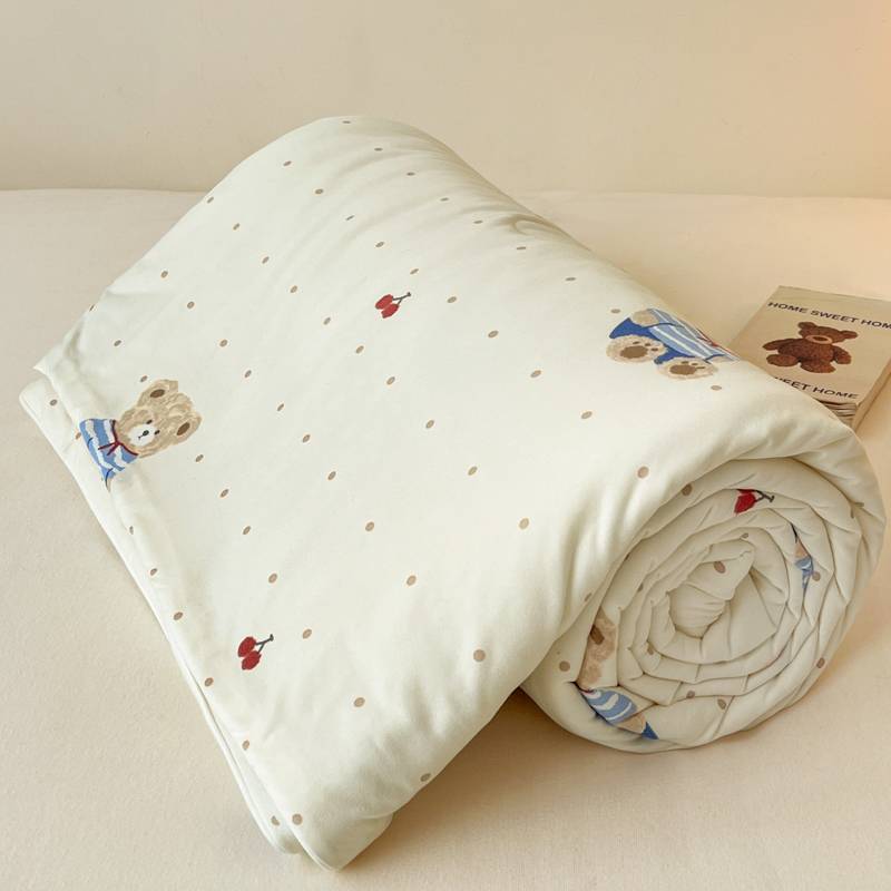 2025 새로운 피부 친화적 인 편안한 만화 니트 코튼 여름 이불 어린이 벌거 벗은 자고 가까운 기계 빨 수있는 기숙사 이불 도매