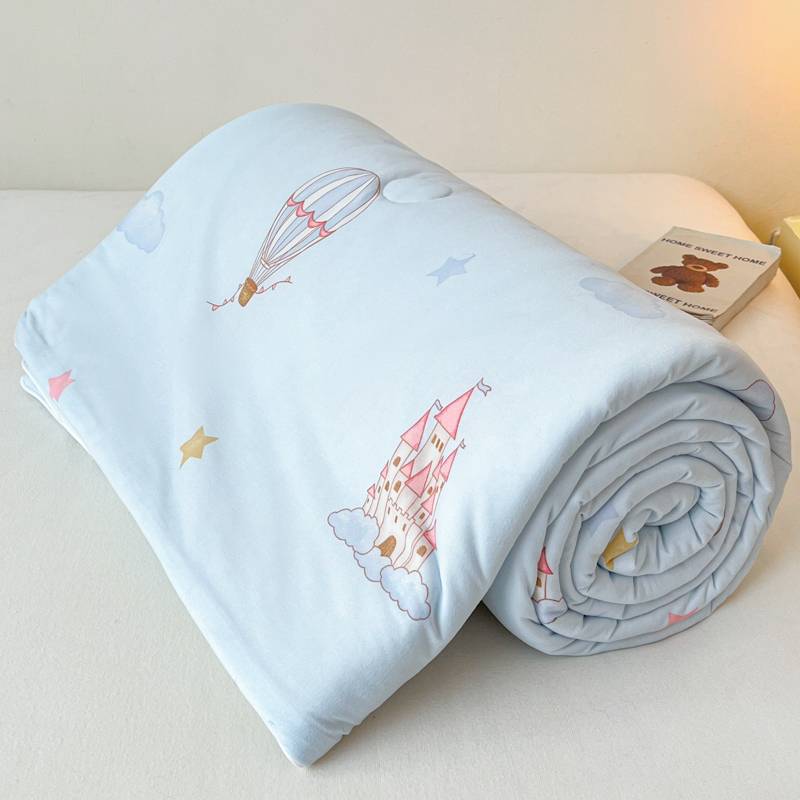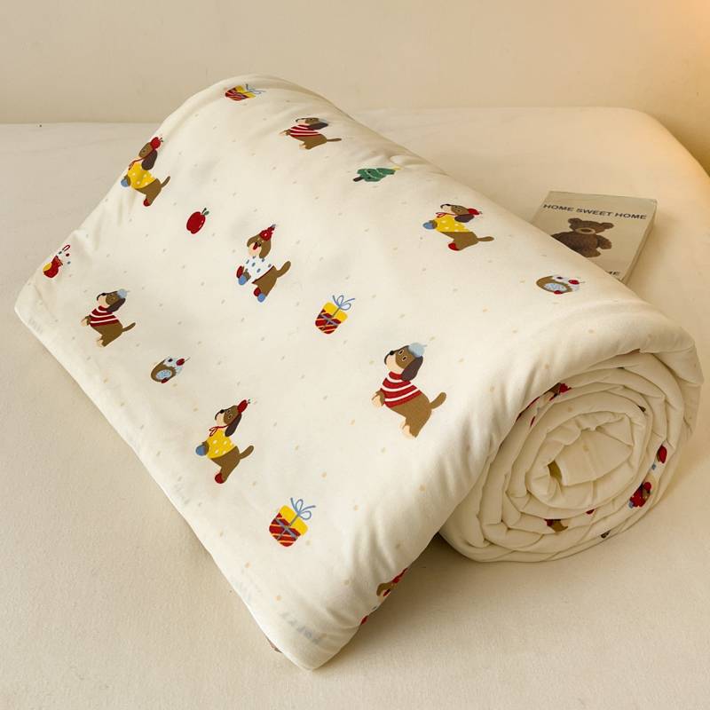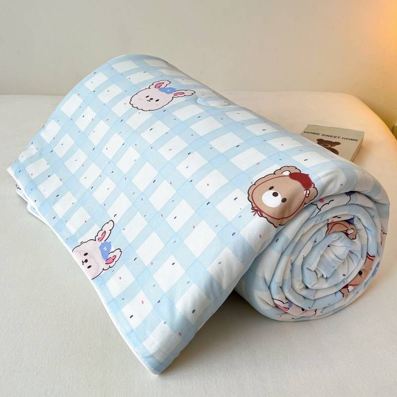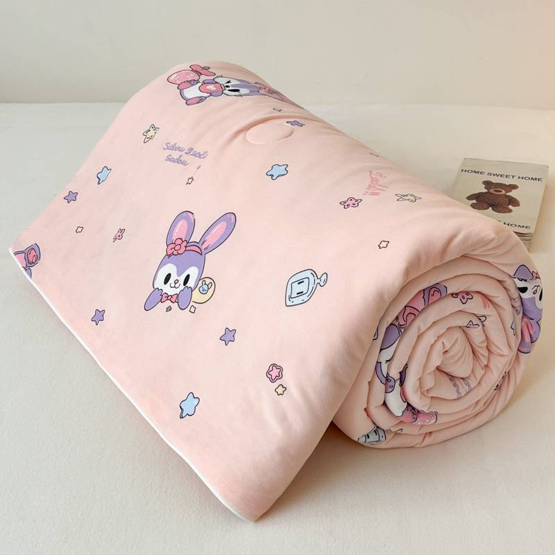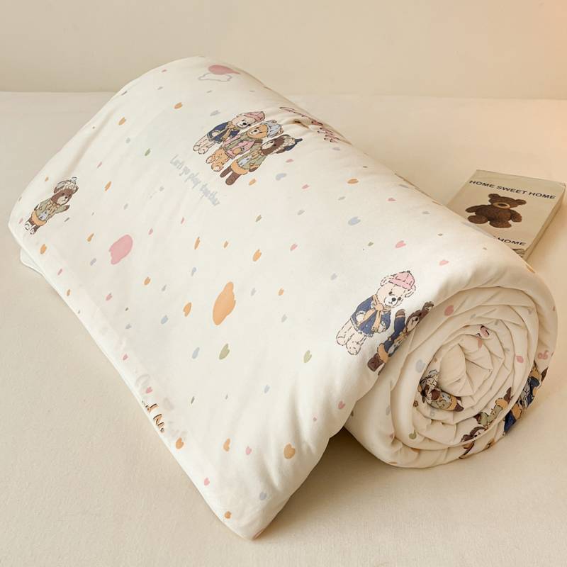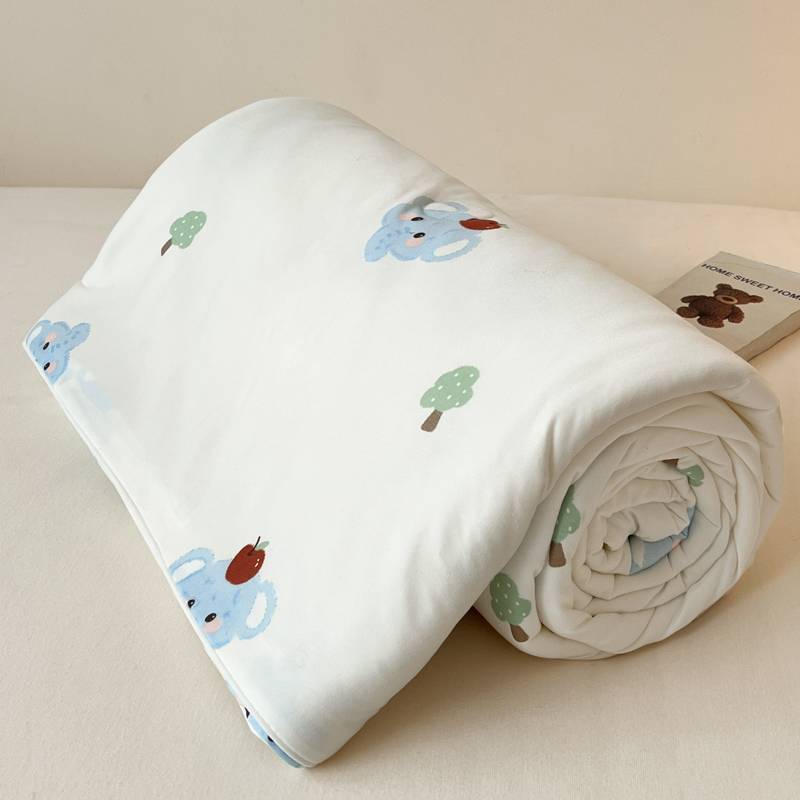 2025 새로운 피부 친화적 인 편안한 만화 니트 코튼 여름 이불 어린이 벌거 벗은 자고 가까운 기계 빨 수있는 기숙사 이불 도매
