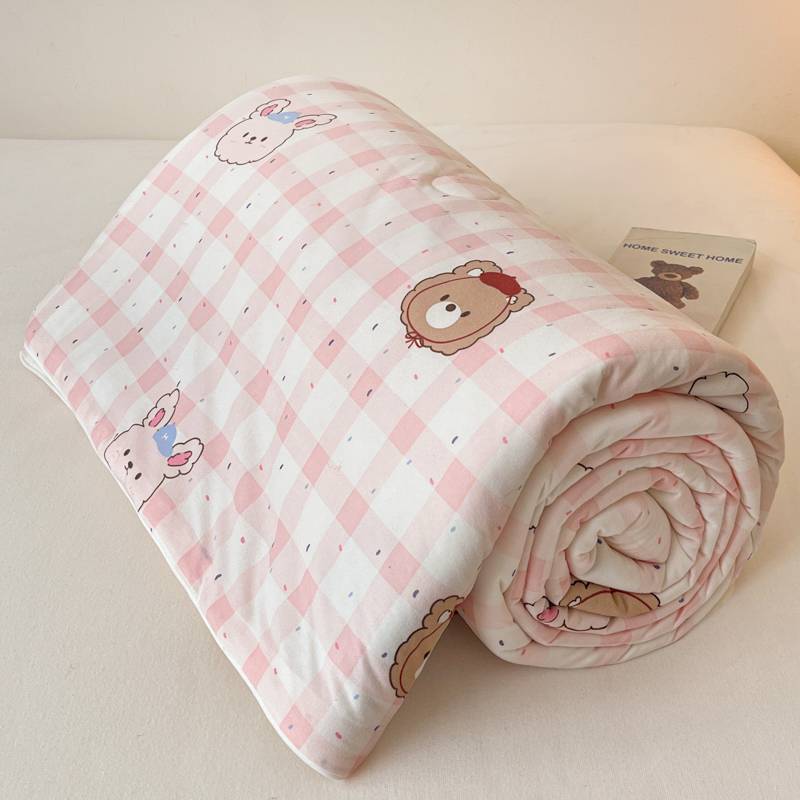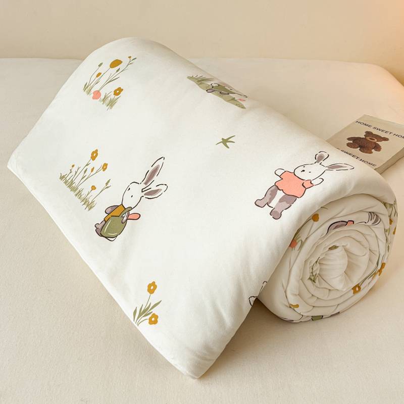 2025 새로운 피부 친화적 인 편안한 만화 니트 코튼 여름 이불 어린이 벌거 벗은 자고 가까운 기계 빨 수있는 기숙사 이불 도매스토어 가기