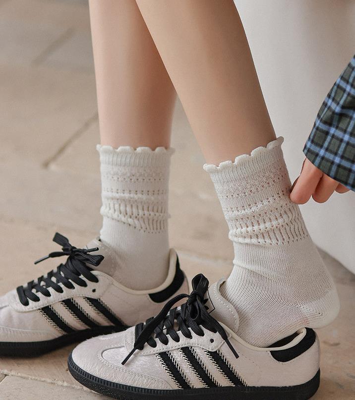 봄과 여름 새로운 간단한 올 매치 솔리드 컬러 할로우 메쉬 나무 귀 미드 튜브 양말 얇은 통기성 여성용 양말스토어 가기