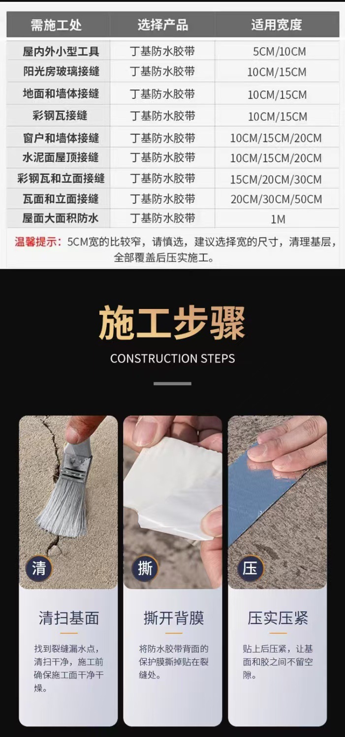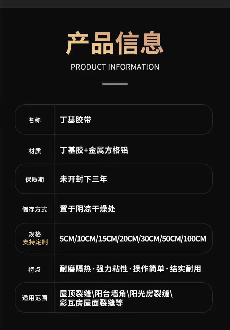 20 m 강한 부틸 자기 접착 방수 테이프 코일 소재 방수 누출 방지 컬러 스틸 타일 햇빛 방 누출 방지 태양 광스토어 가기