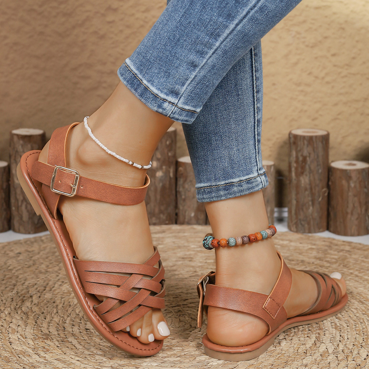 대외 무역 아마존 플랫 샌들 여성 여름 캐주얼 크로스 스트랩 편안한 패션 올 매치 로마 비치 슈즈