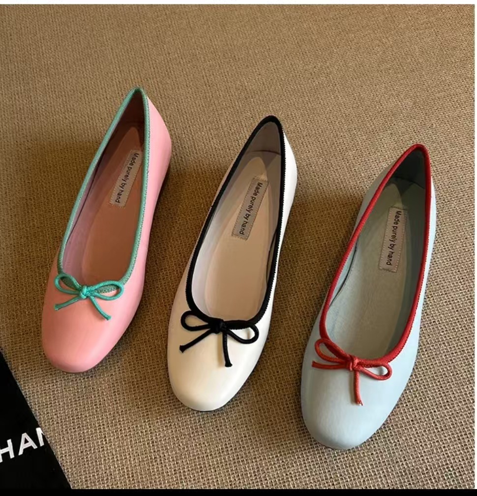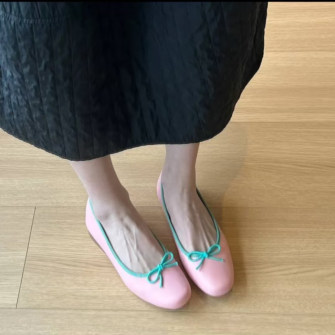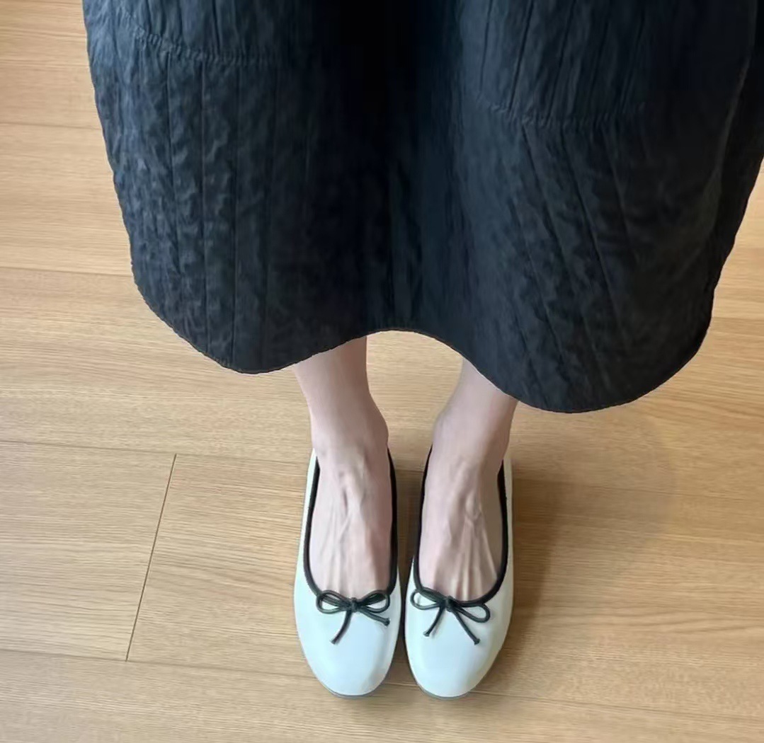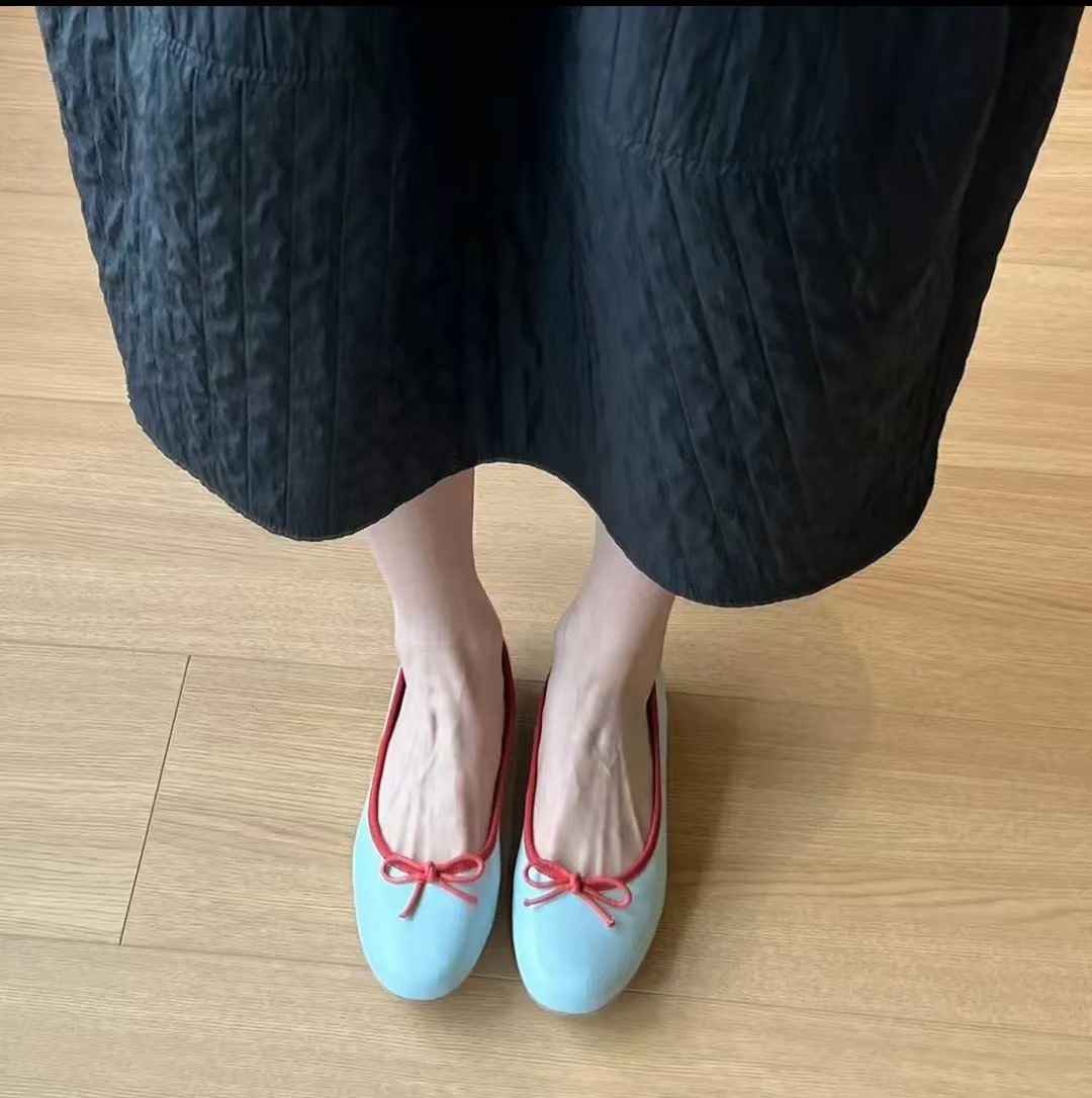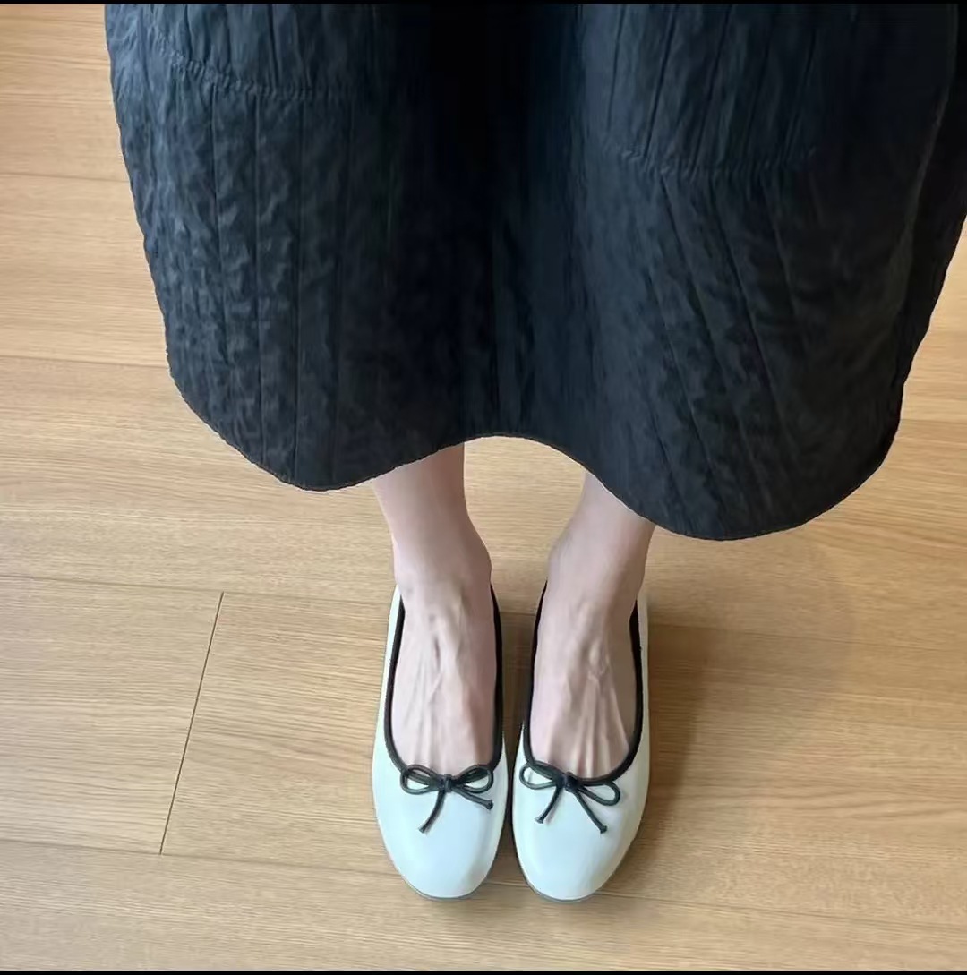 발레 슈즈 프렌치 스타일 리본 실버 여성용 2025 신상 슬립온 할머니 신발 라운드 토 얕은 입구 여성 플랫 슈즈스토어 가기