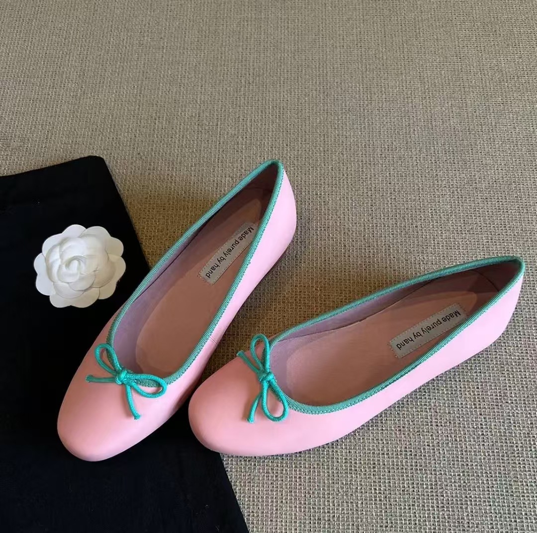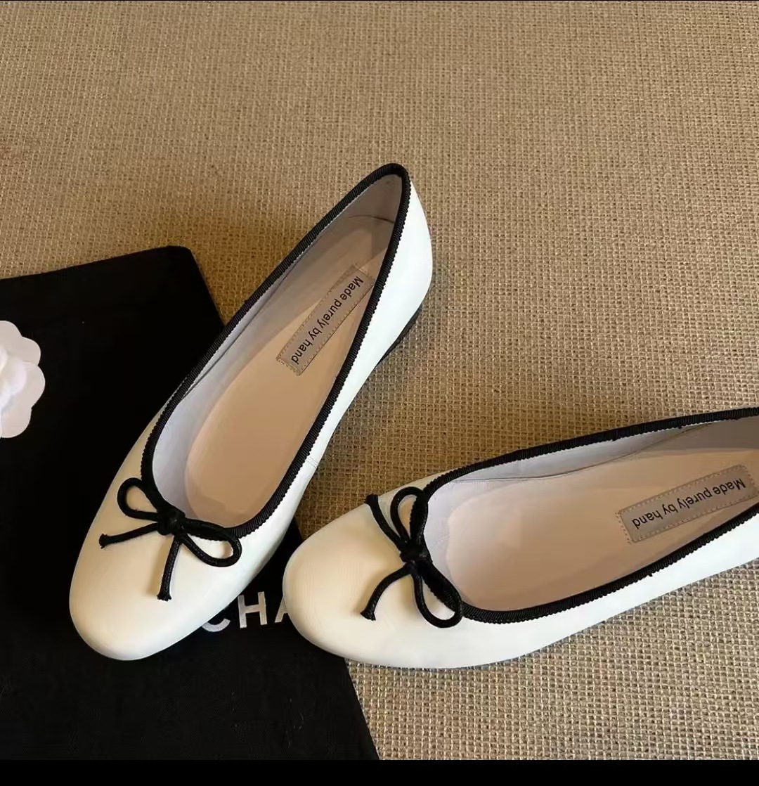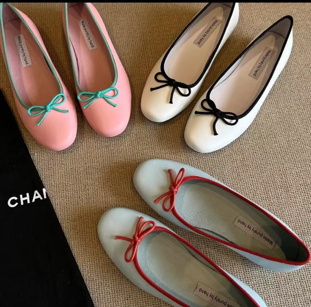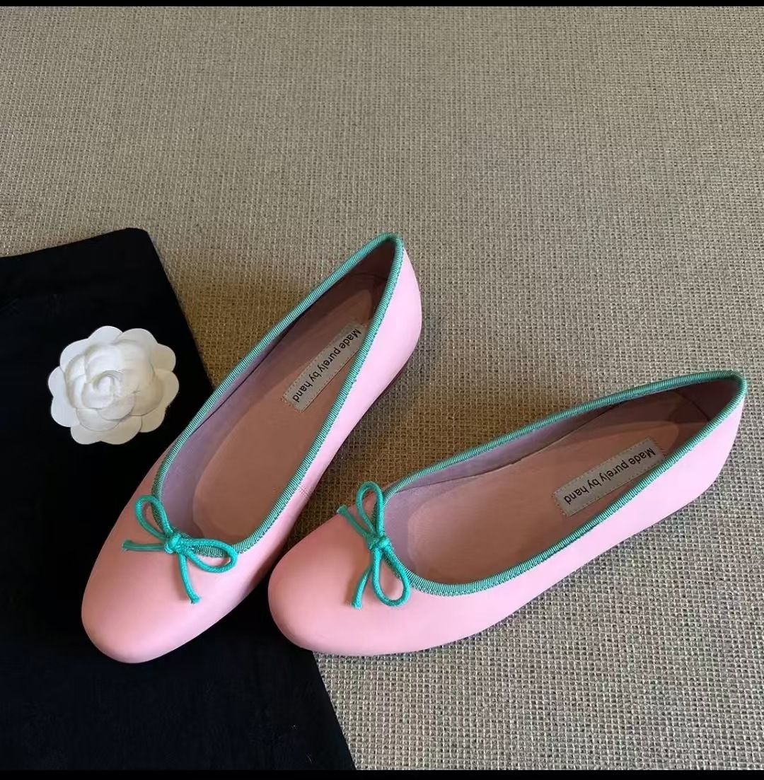발레 슈즈 프렌치 스타일 리본 실버 여성용 2025 신상 슬립온 할머니 신발 라운드 토 얕은 입구 여성 플랫 슈즈스토어 가기