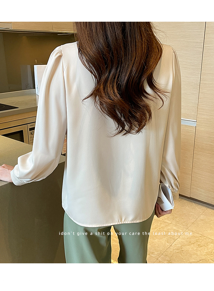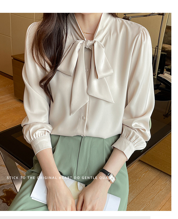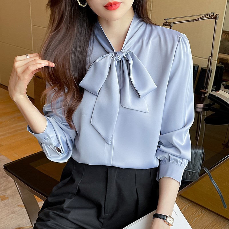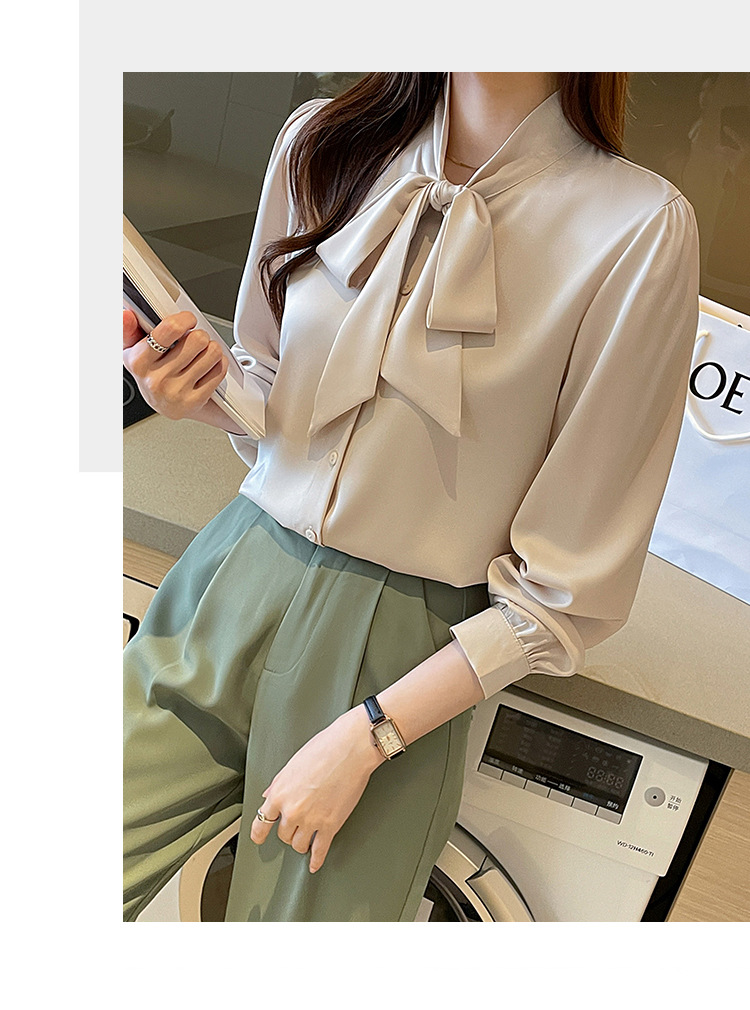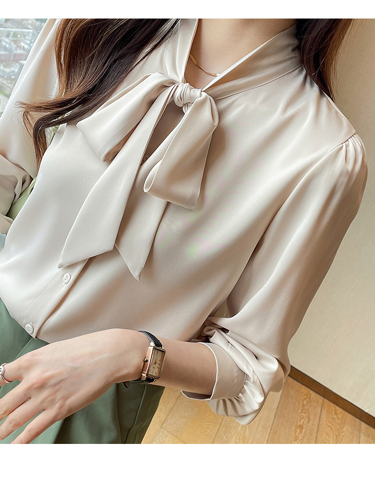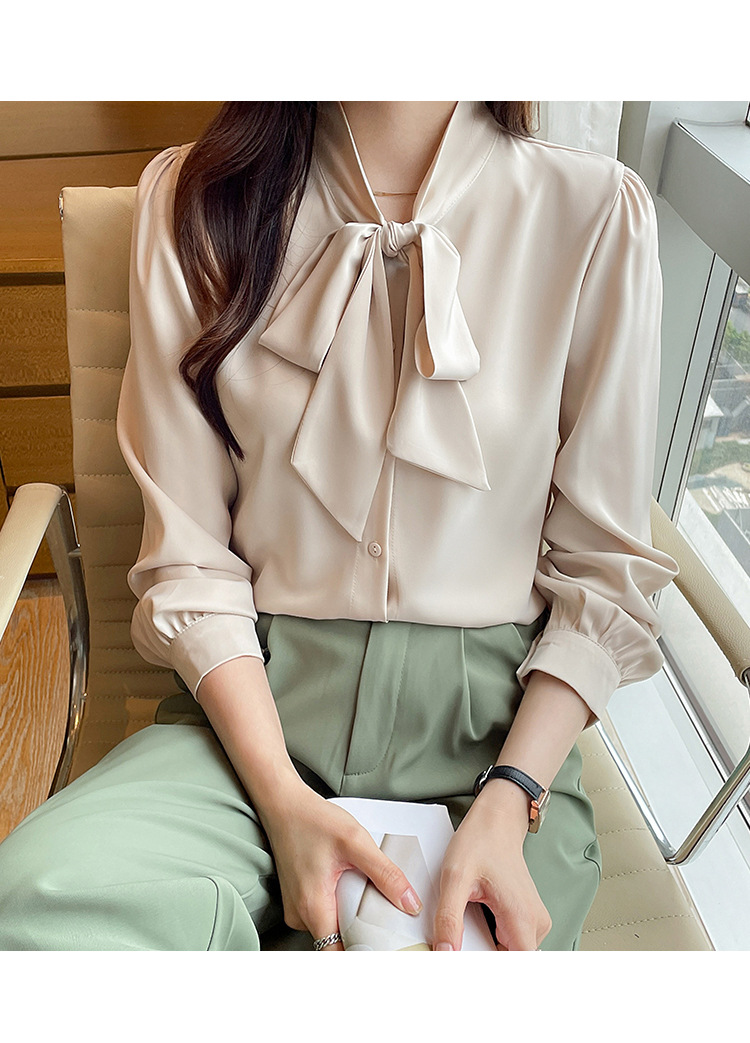 리얼 2025 화이트 긴팔 쉬폰 셔츠 여성용 드래핑 한국식 스트랩 탑 젠틀 스타일 셔츠스토어 가기