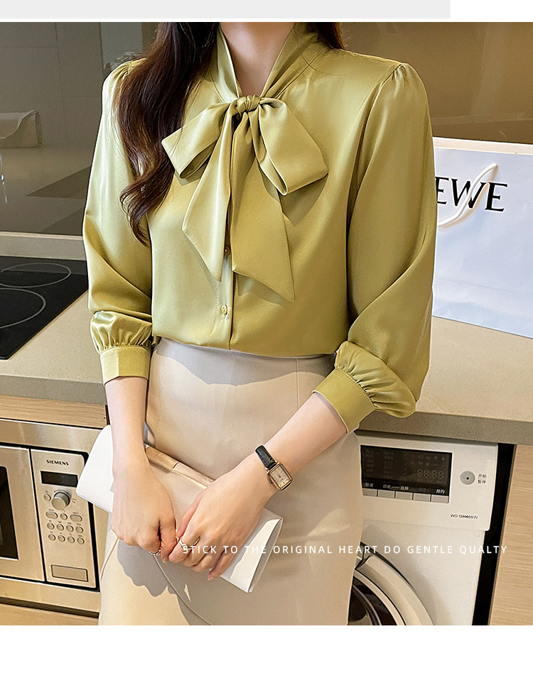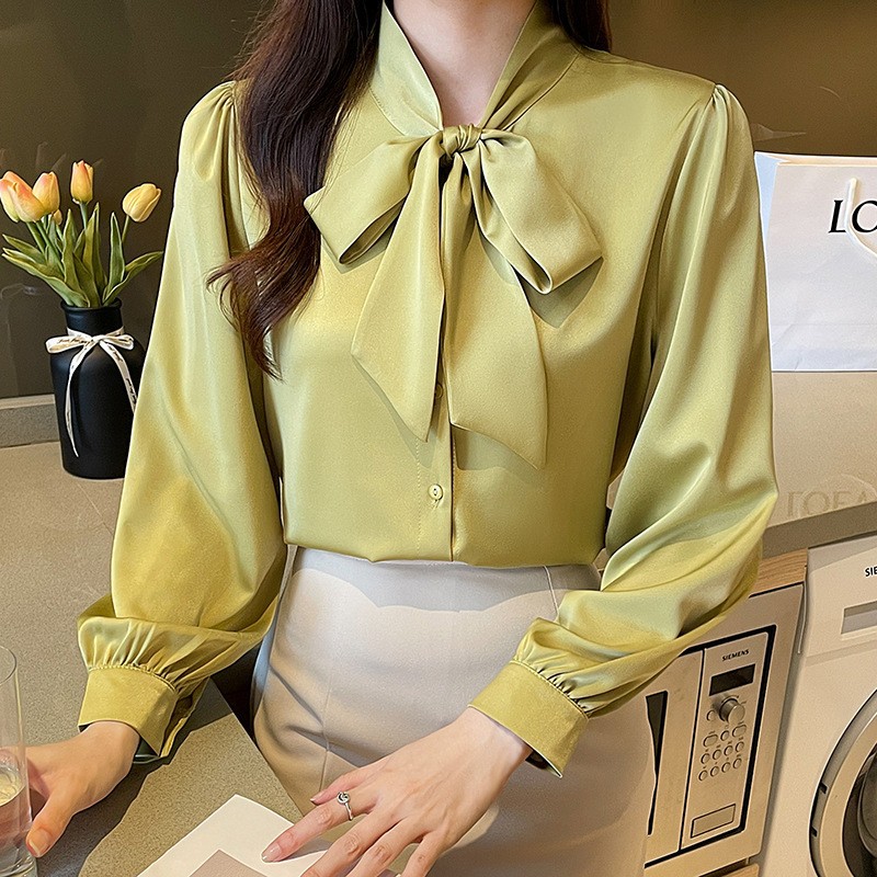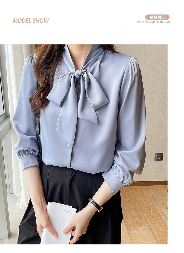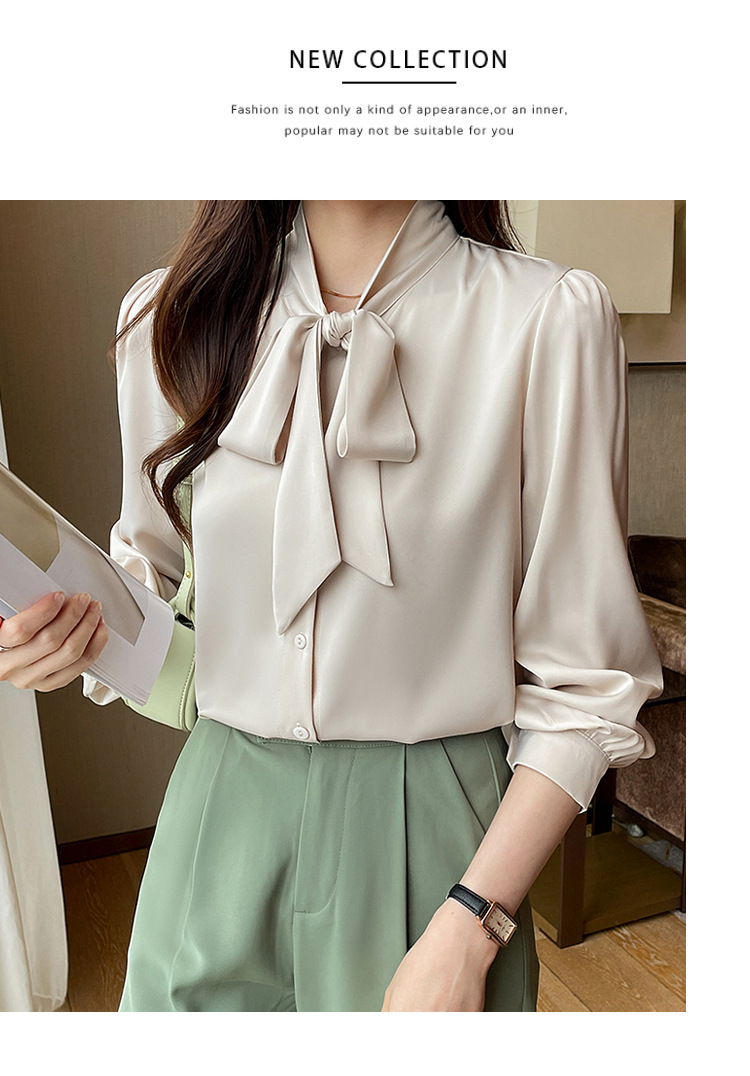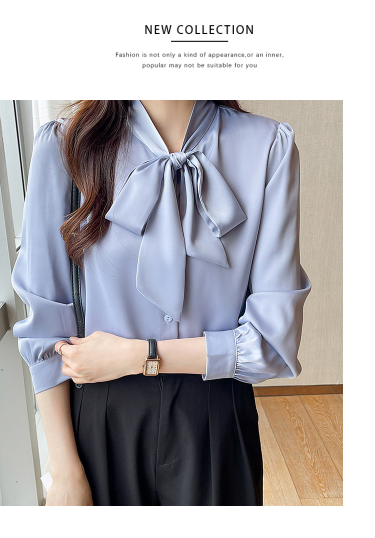 리얼 2025 화이트 긴팔 쉬폰 셔츠 여성용 드래핑 한국식 스트랩 탑 젠틀 스타일 셔츠스토어 가기