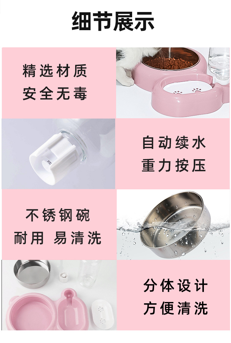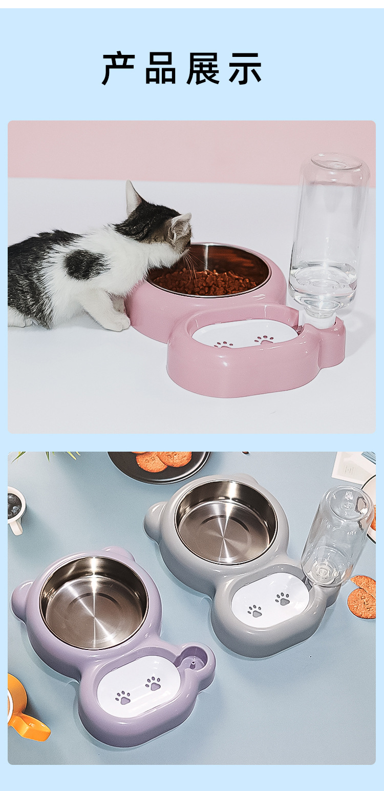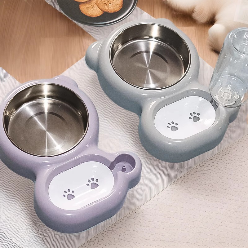 강아지 물그릇과 사료그릇 2in1, 넘어짐 방지, 애완동물 급수 및 급식용 이중 그릇, 고양이 사료그릇, 강아지 사료그릇, 스테인리스 고양이 그릇