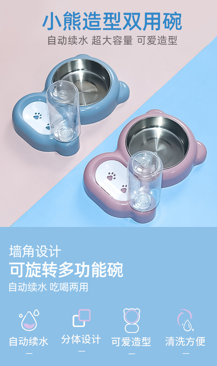 강아지 물그릇과 사료그릇 2in1, 넘어짐 방지, 애완동물 급수 및 급식용 이중 그릇, 고양이 사료그릇, 강아지 사료그릇, 스테인리스 고양이 그릇스토어 가기