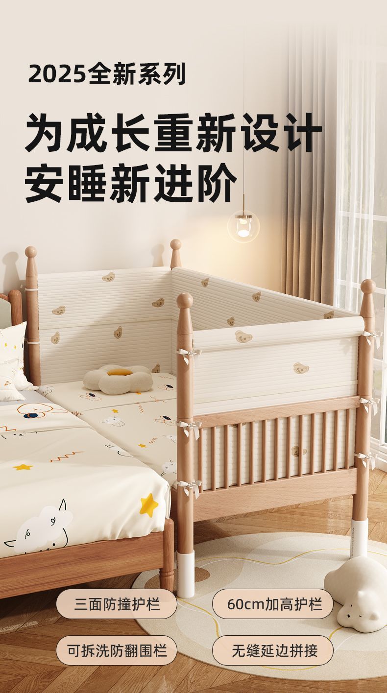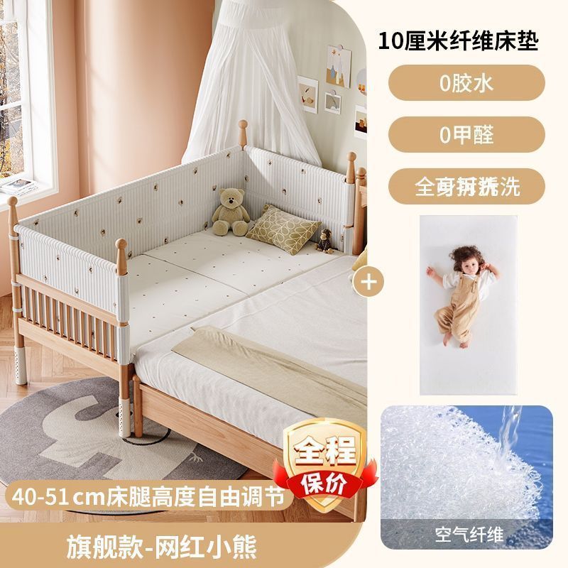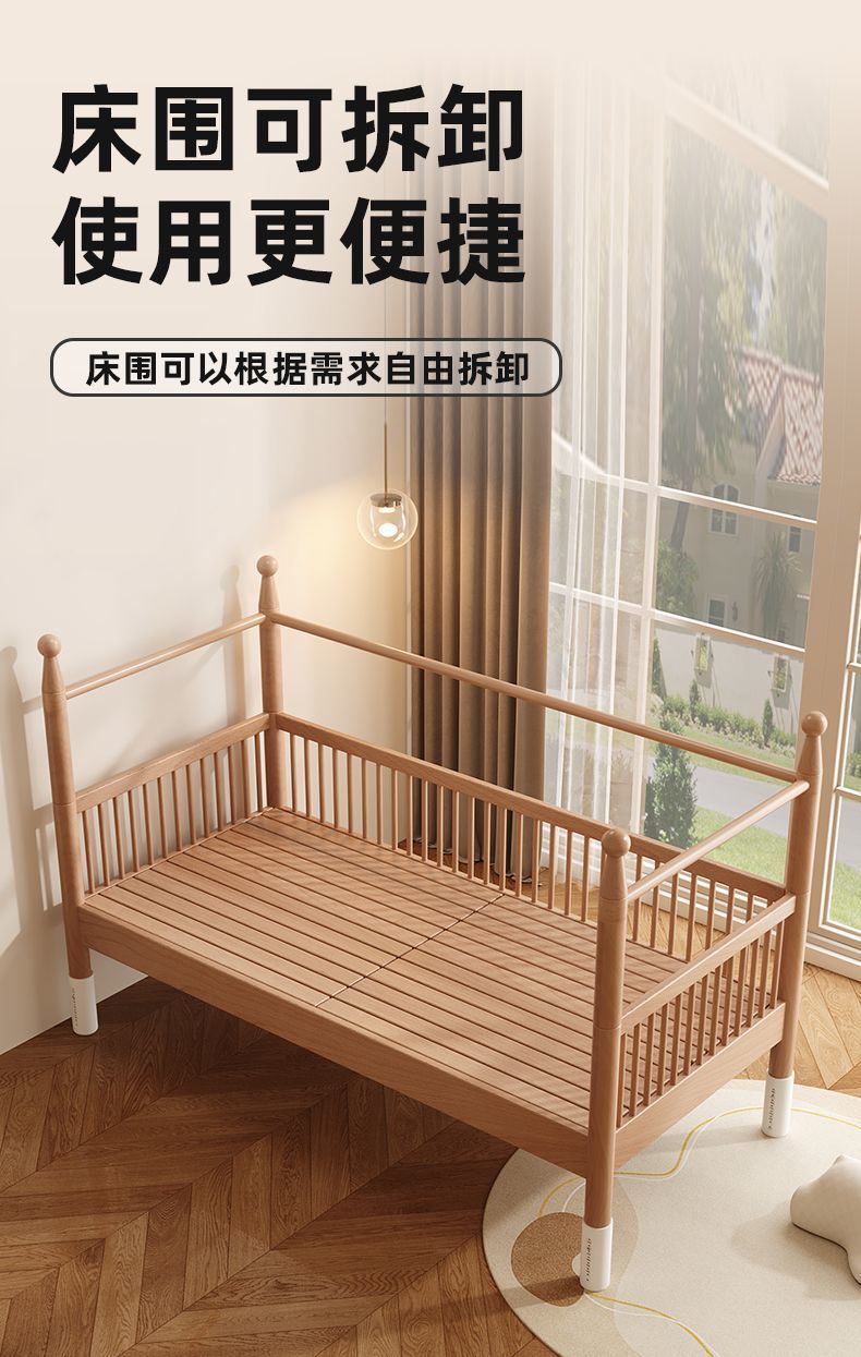 솔리드 우드 너도밤 나무 어린이 접합 침대 아기의 접합 침대 리프팅 가드 레일 넓어진 침대 침대 아기 싱글 작은 침대스토어 가기