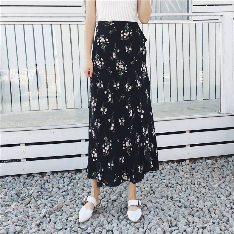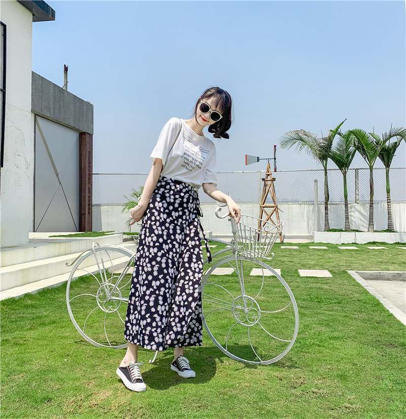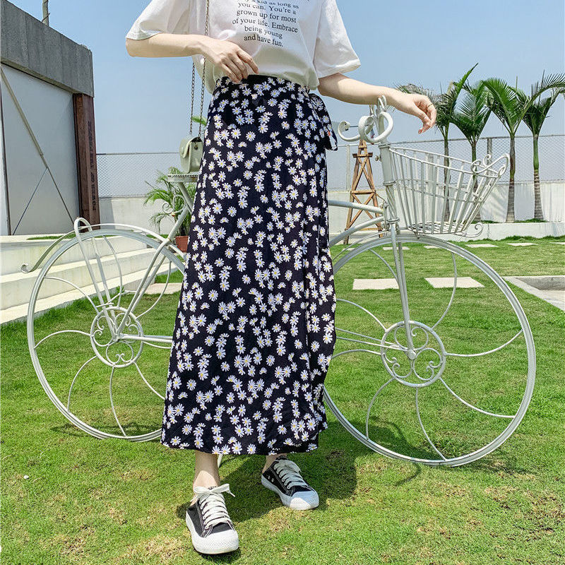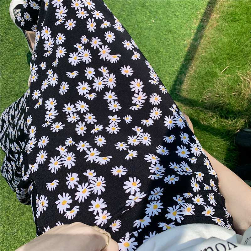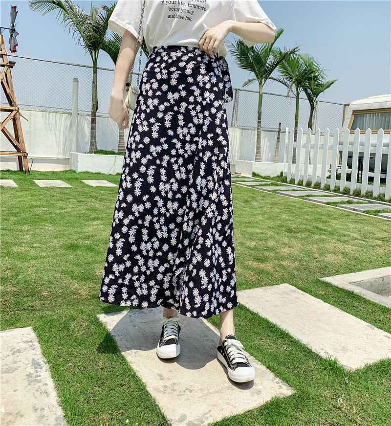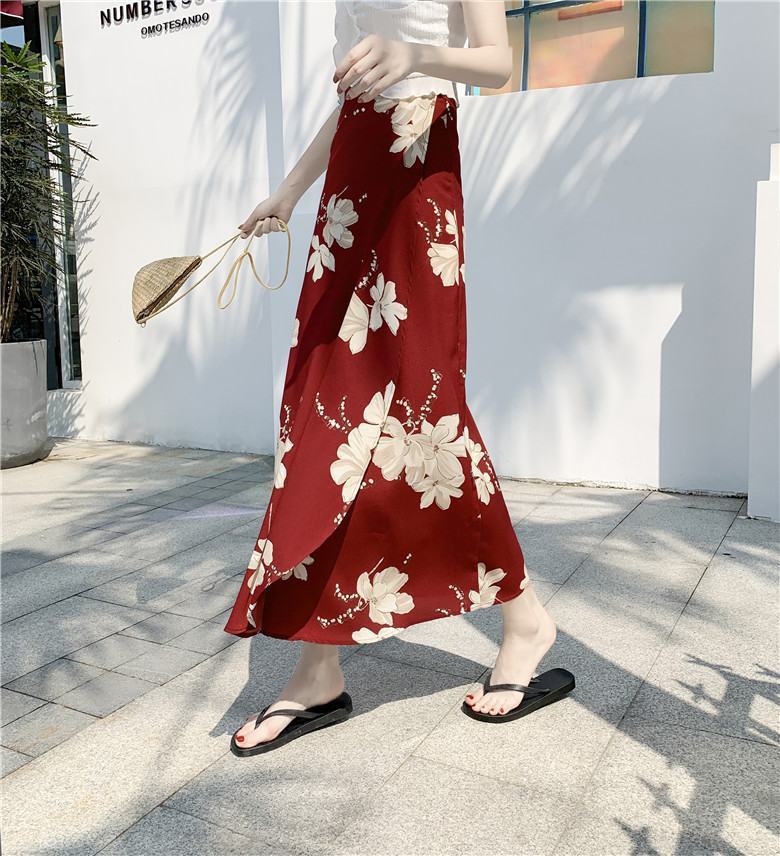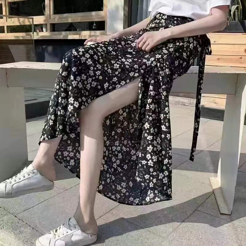 홀리데이 선 스크린 쉬폰 원피스 스커트 플로랄 롱 스커트 비치 스커트 여자 여름 중간 길이의 레이스 업 원피스 스커트스토어 가기