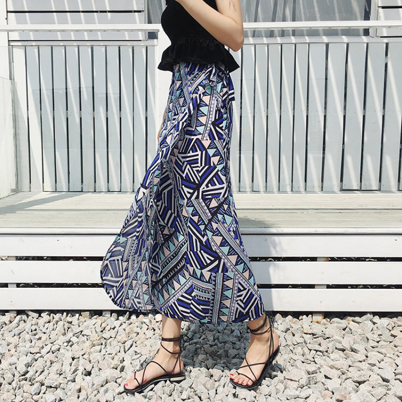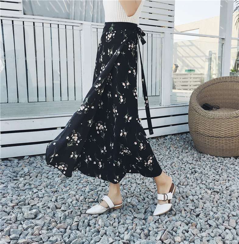 홀리데이 선 스크린 쉬폰 원피스 스커트 플로랄 롱 스커트 비치 스커트 여자 여름 중간 길이의 레이스 업 원피스 스커트
