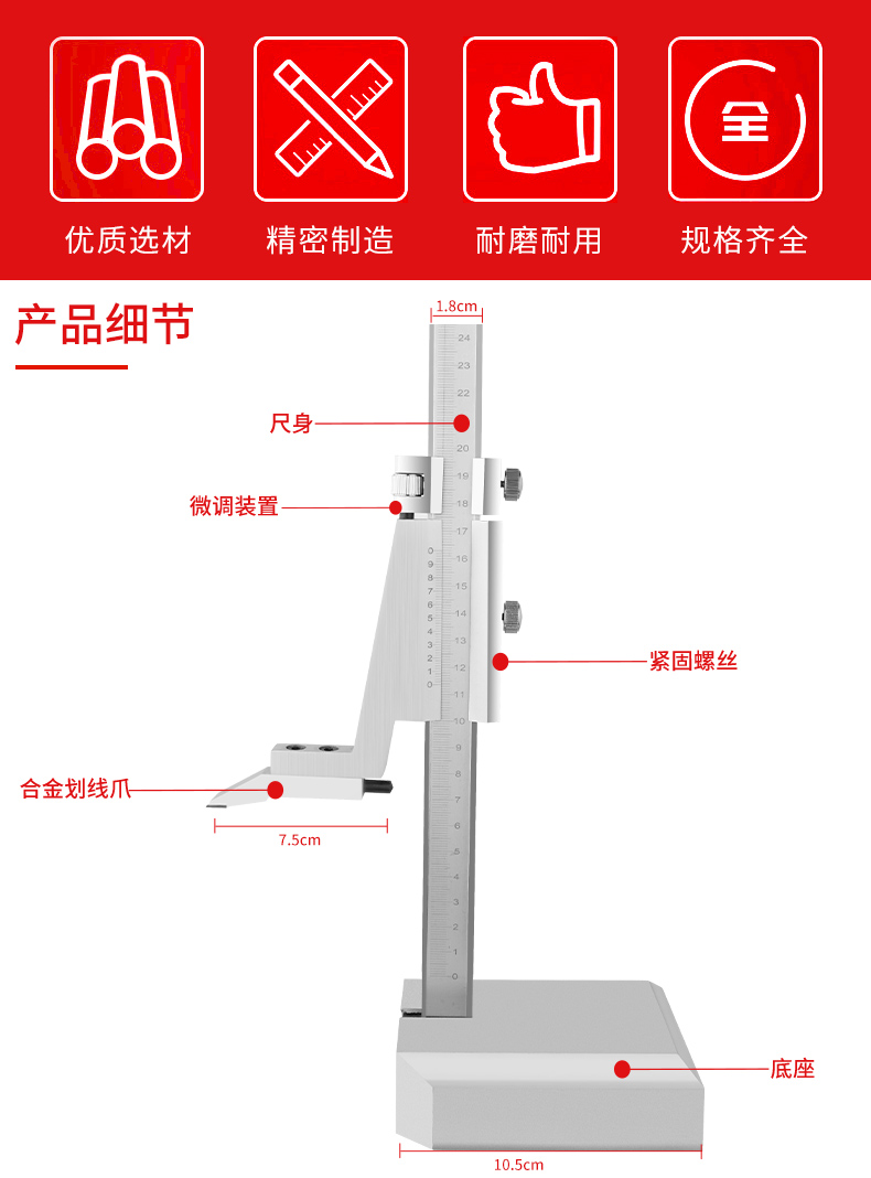 • 스테인레스 스틸 높이 커서 0-300mm (측정 모델 고정밀))