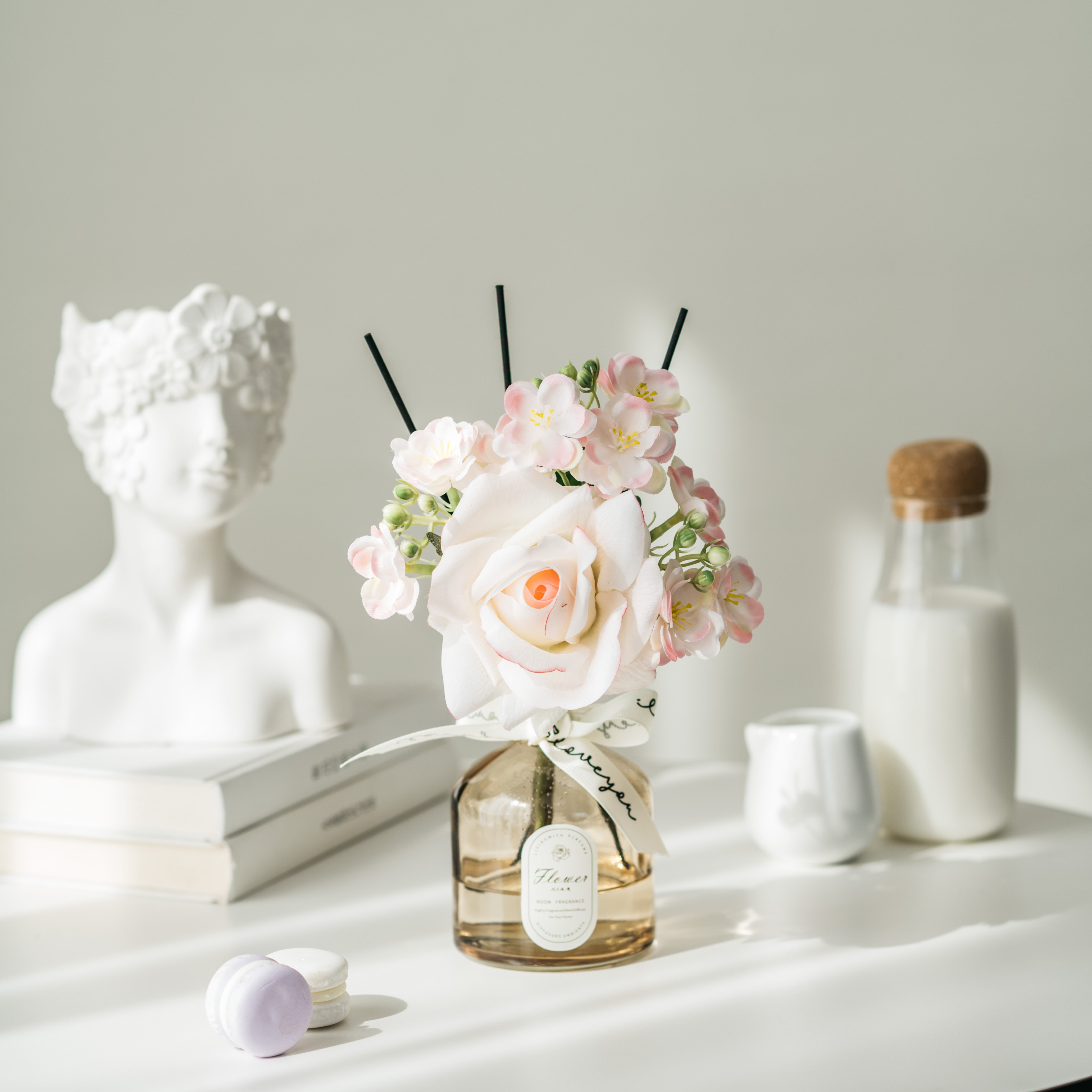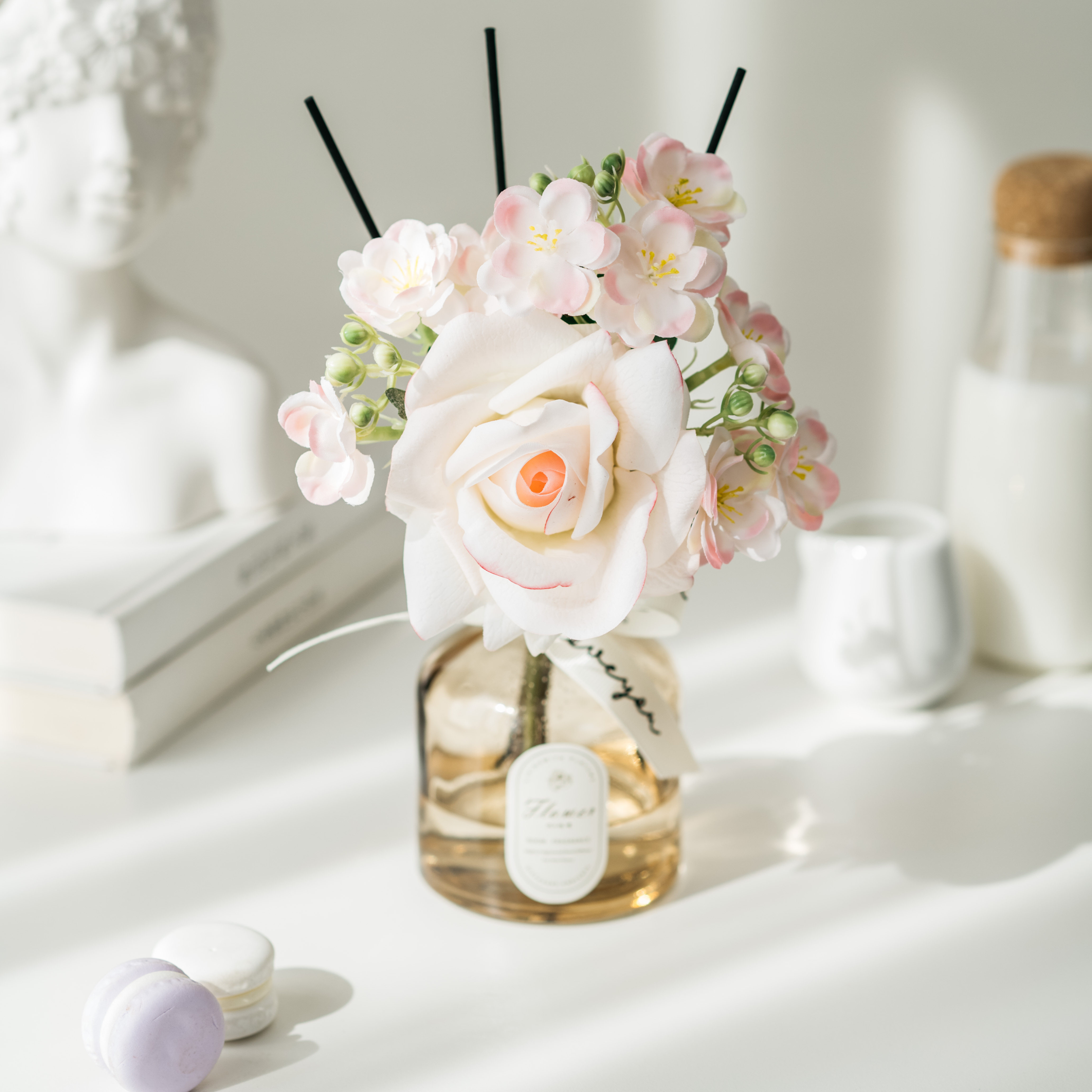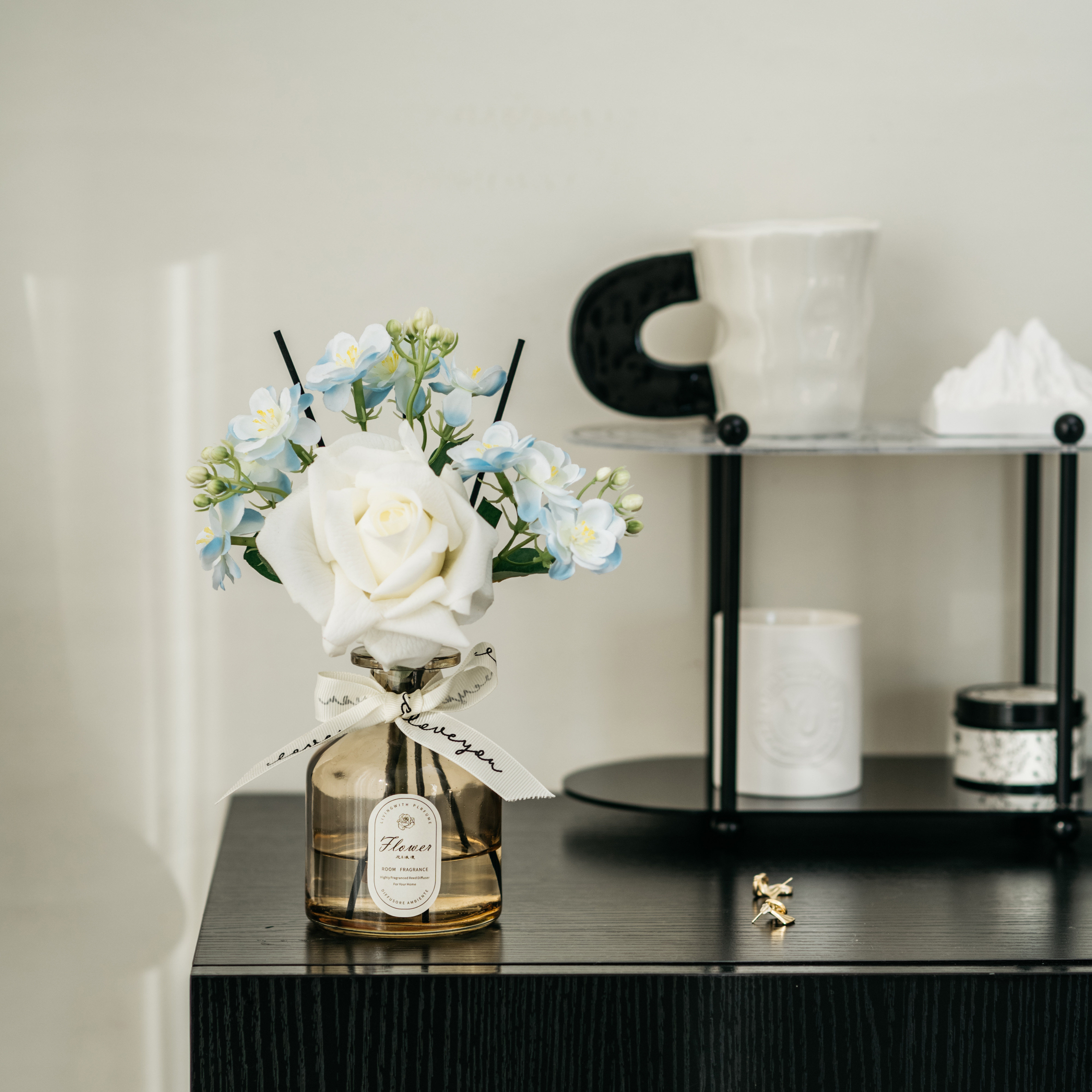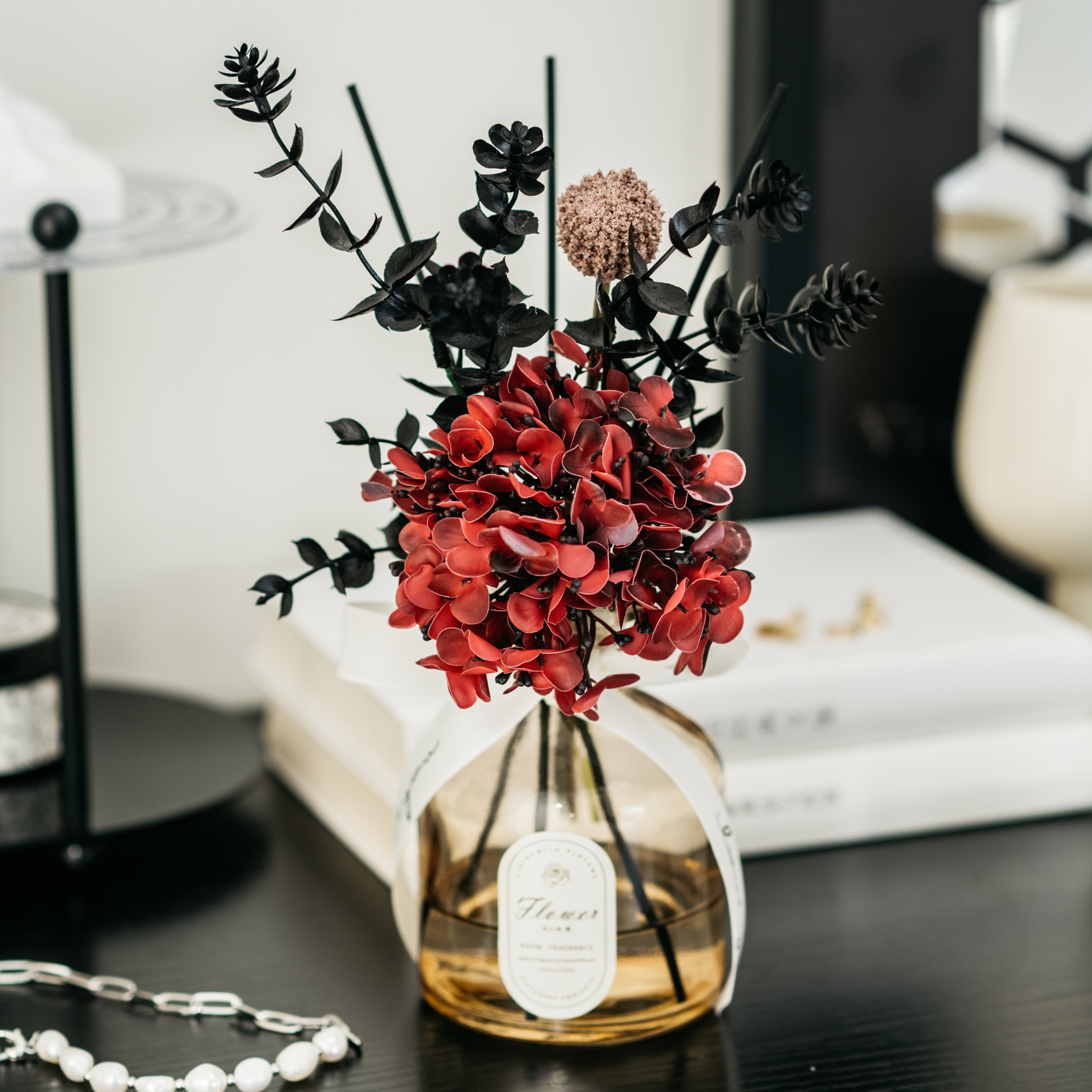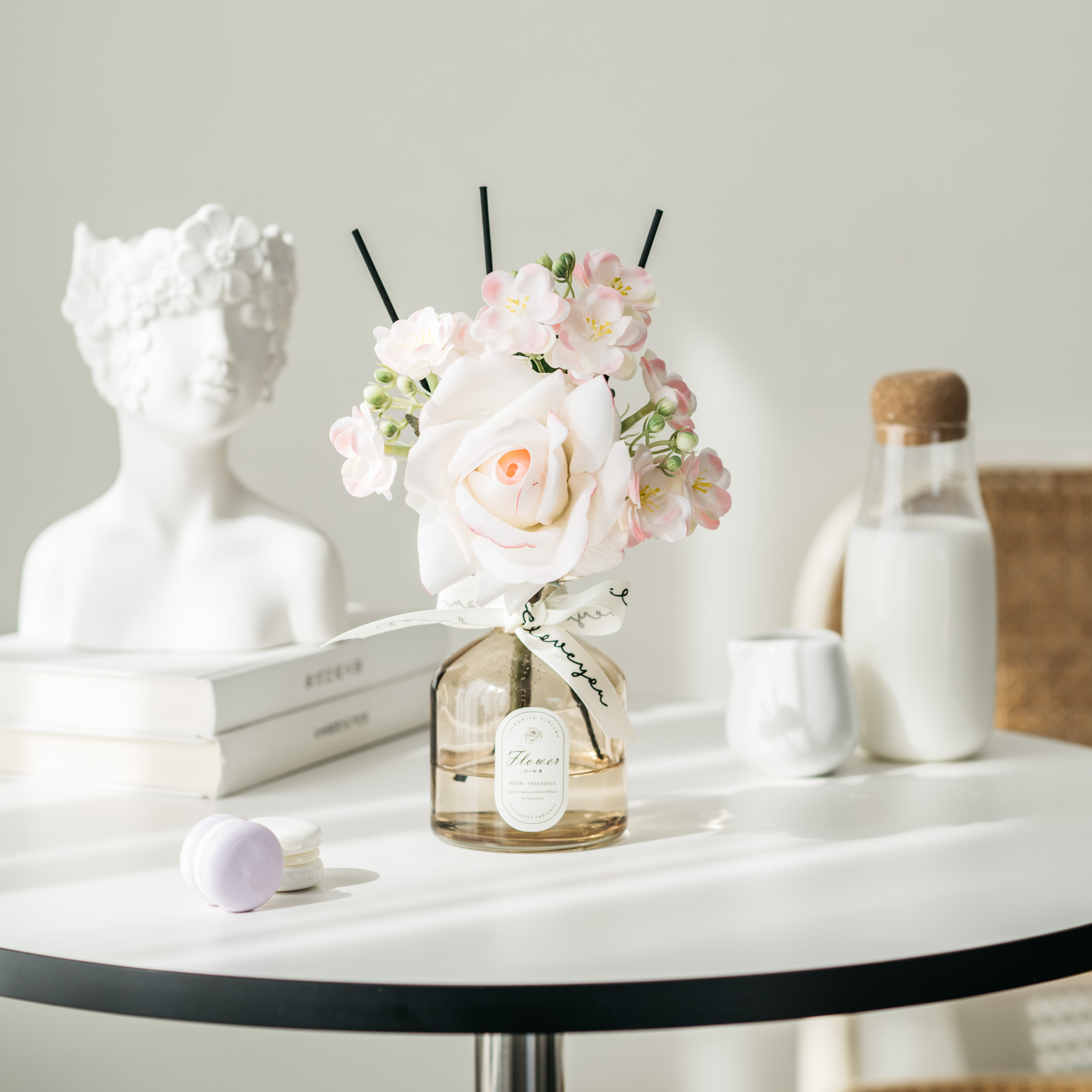 • 라이트 커피 3 헤드 번트 엣지 로즈 리틀 블랙 드레스 아로마테라피
