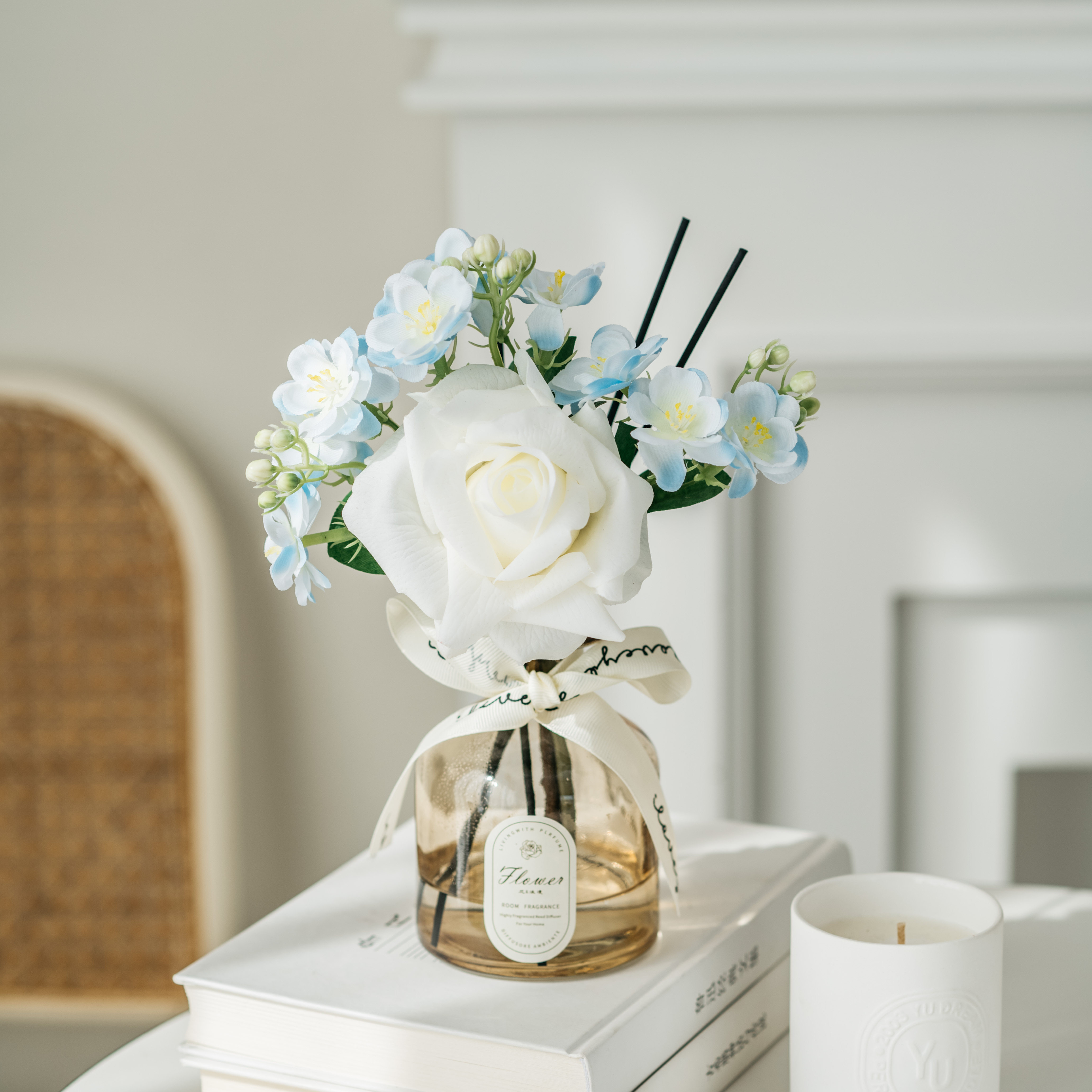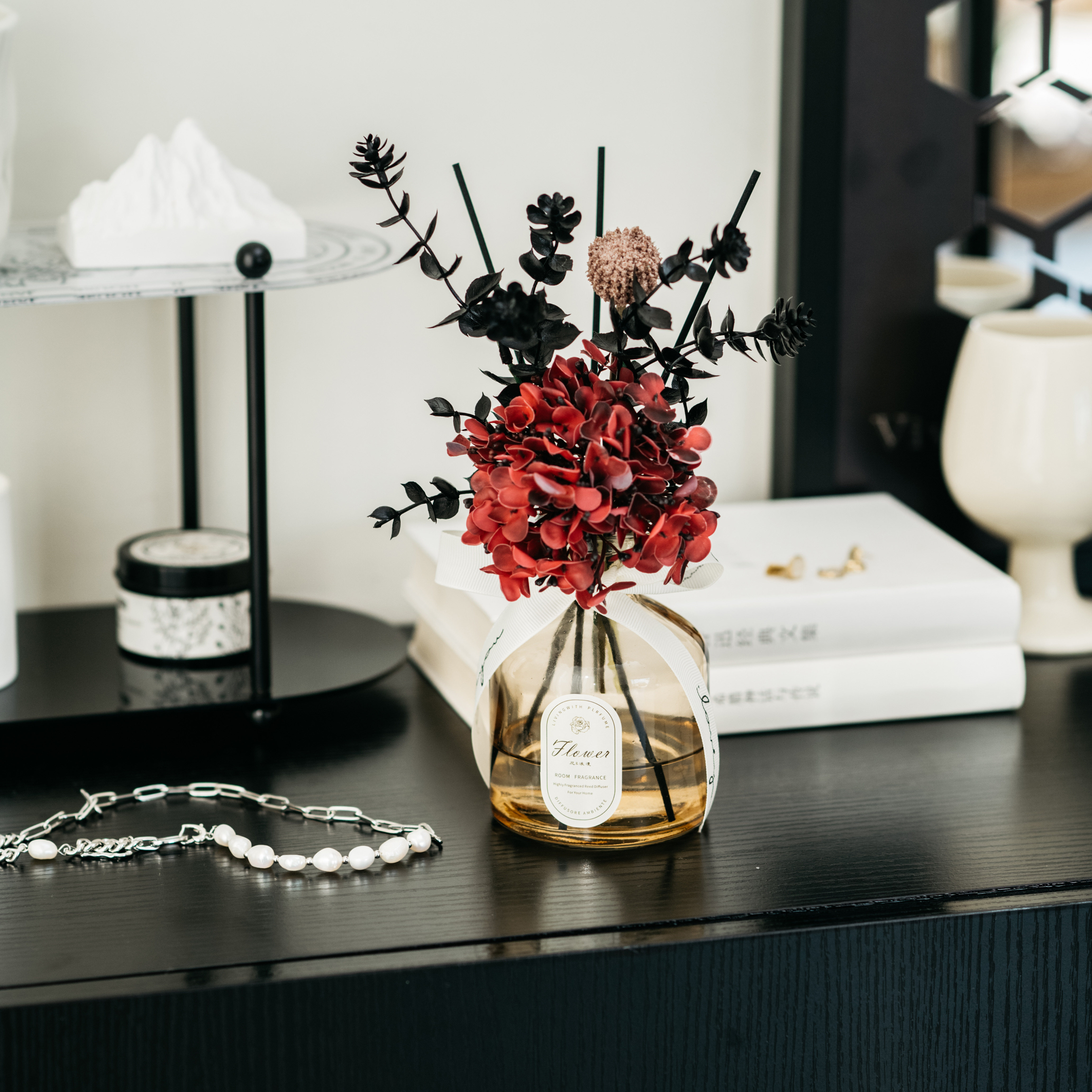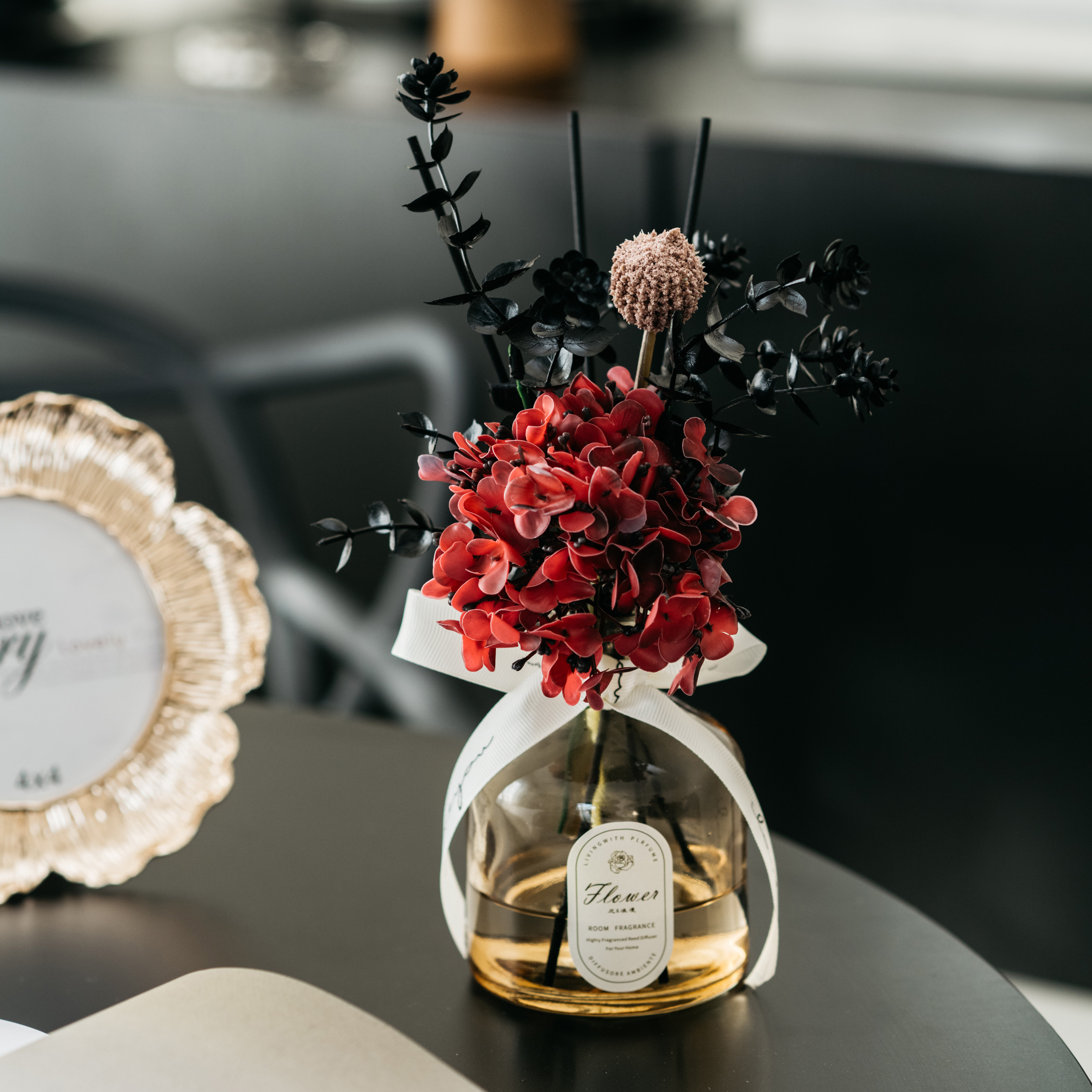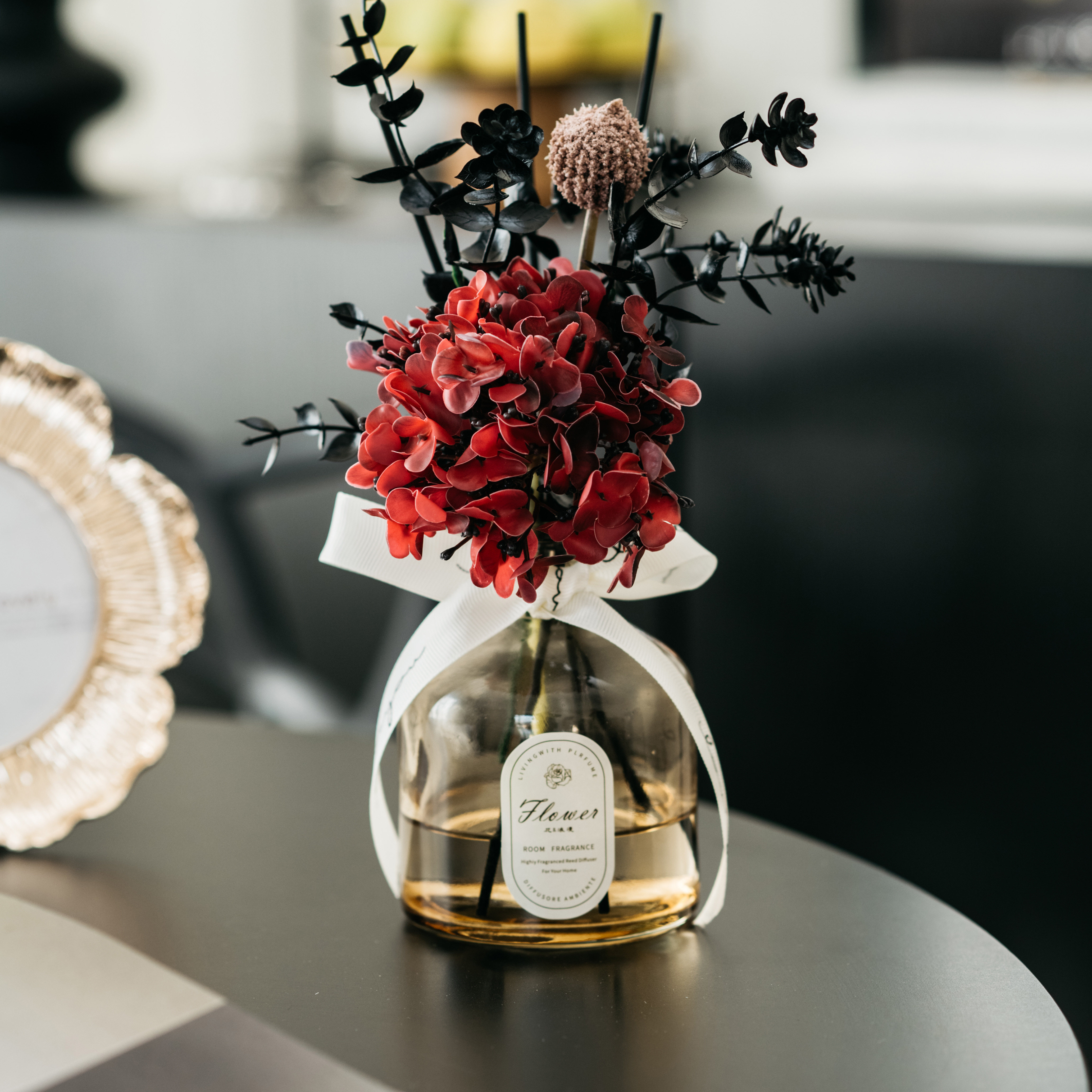 • 라이트 커피 3 헤드 번트 엣지 로즈 리틀 블랙 드레스 아로마테라피