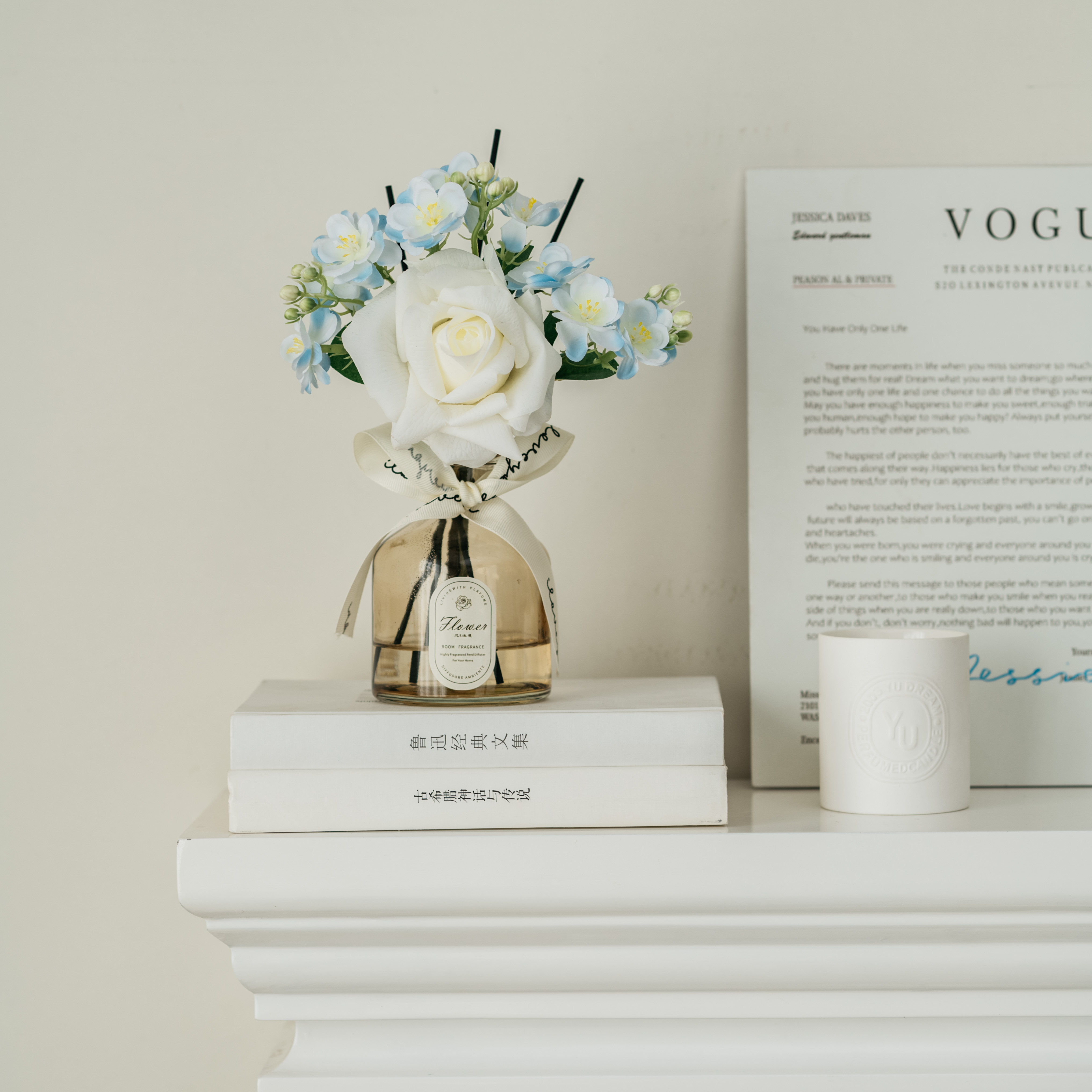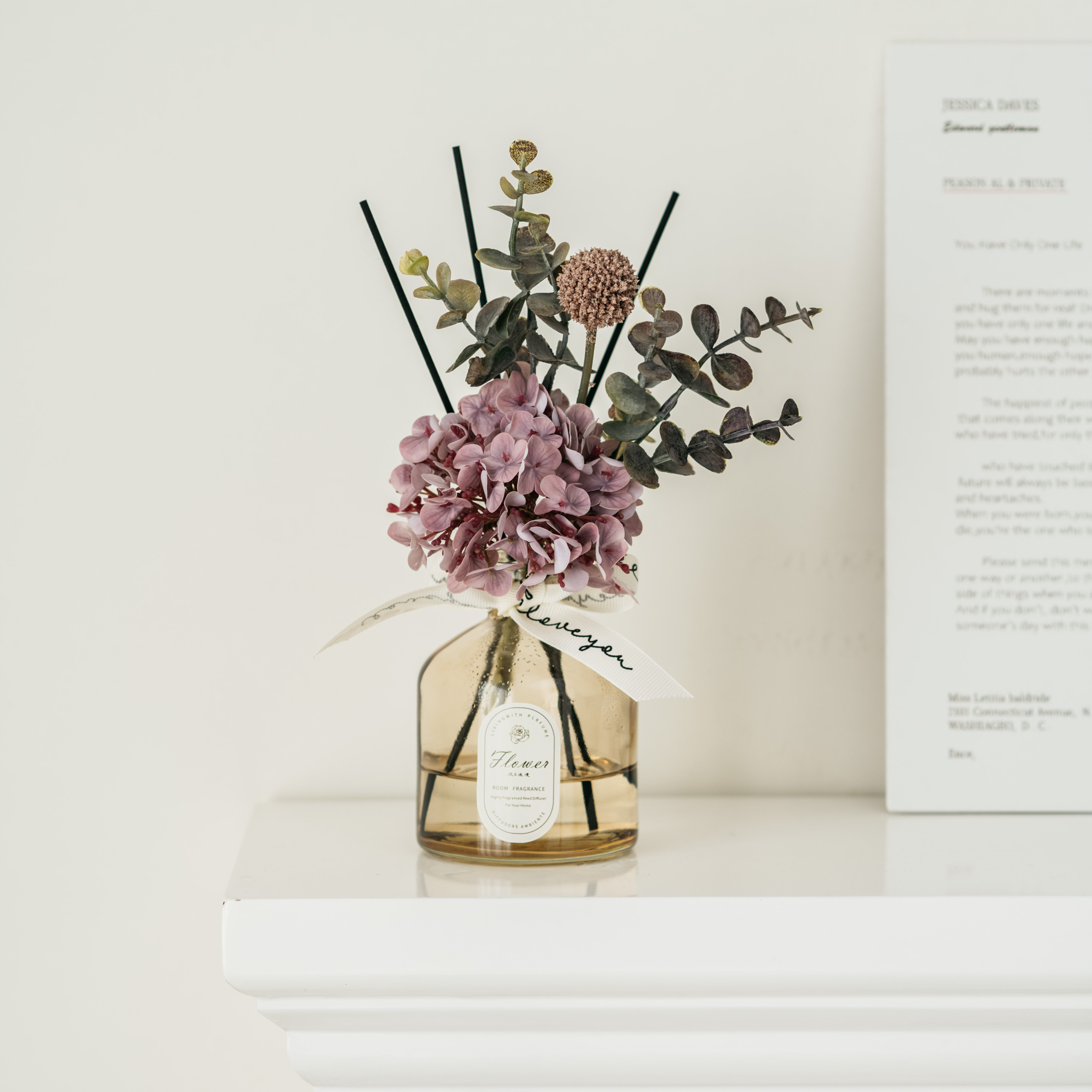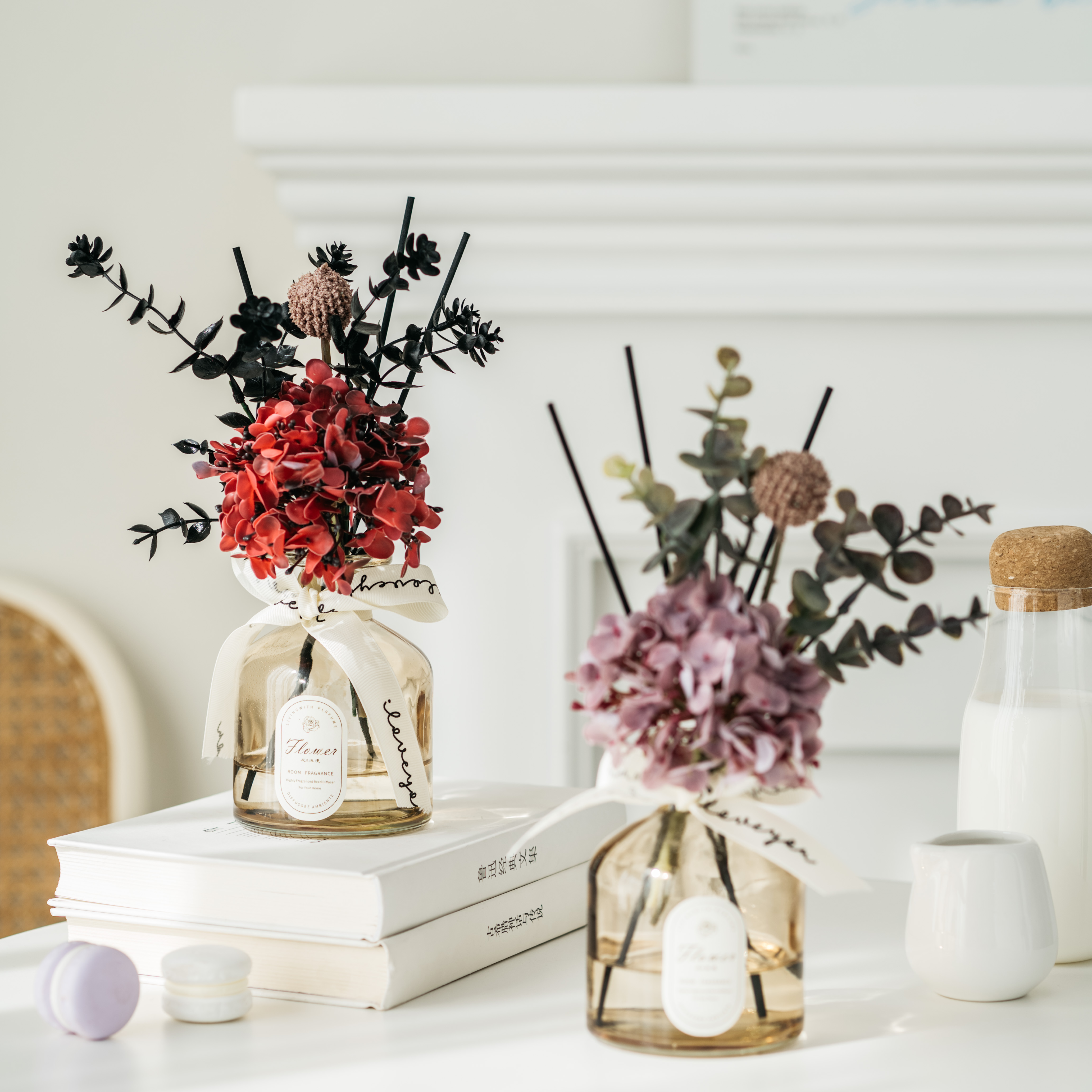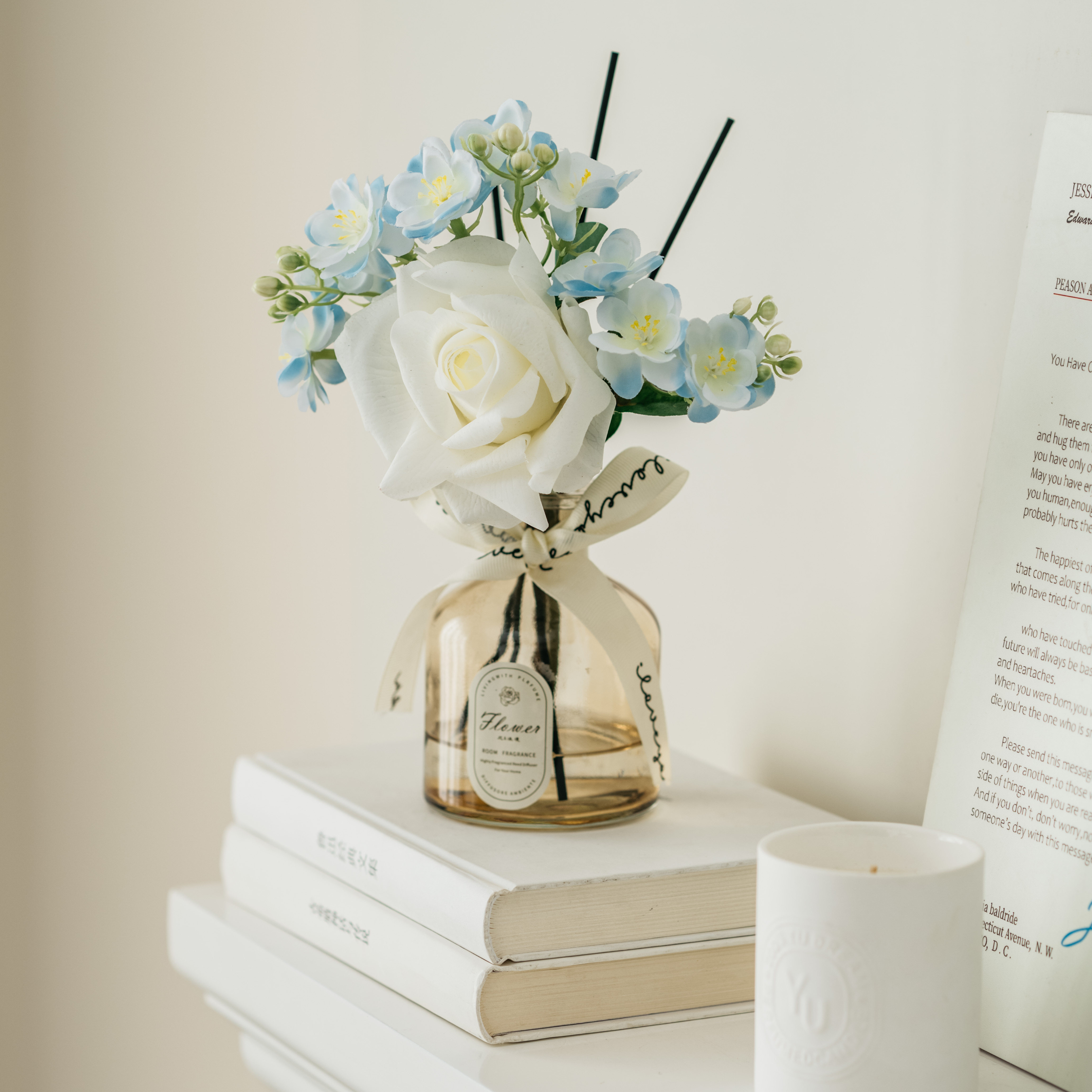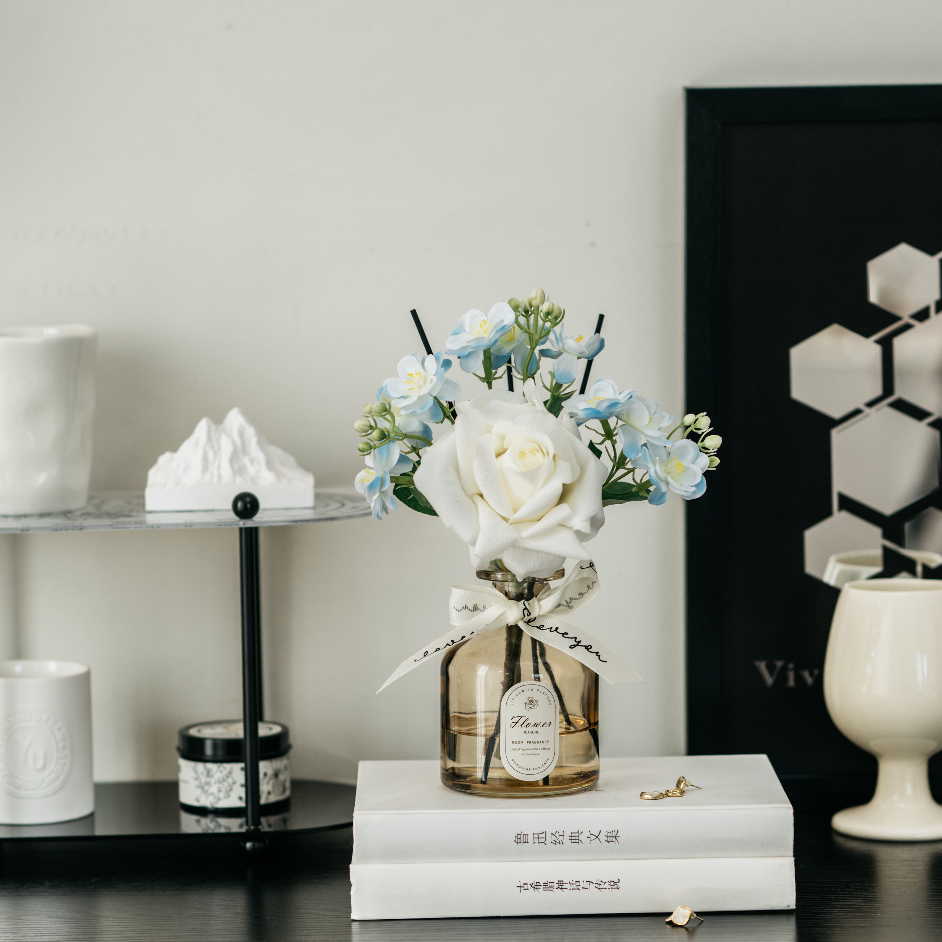 • 라이트 커피 3 헤드 번트 엣지 로즈 리틀 블랙 드레스 아로마테라피