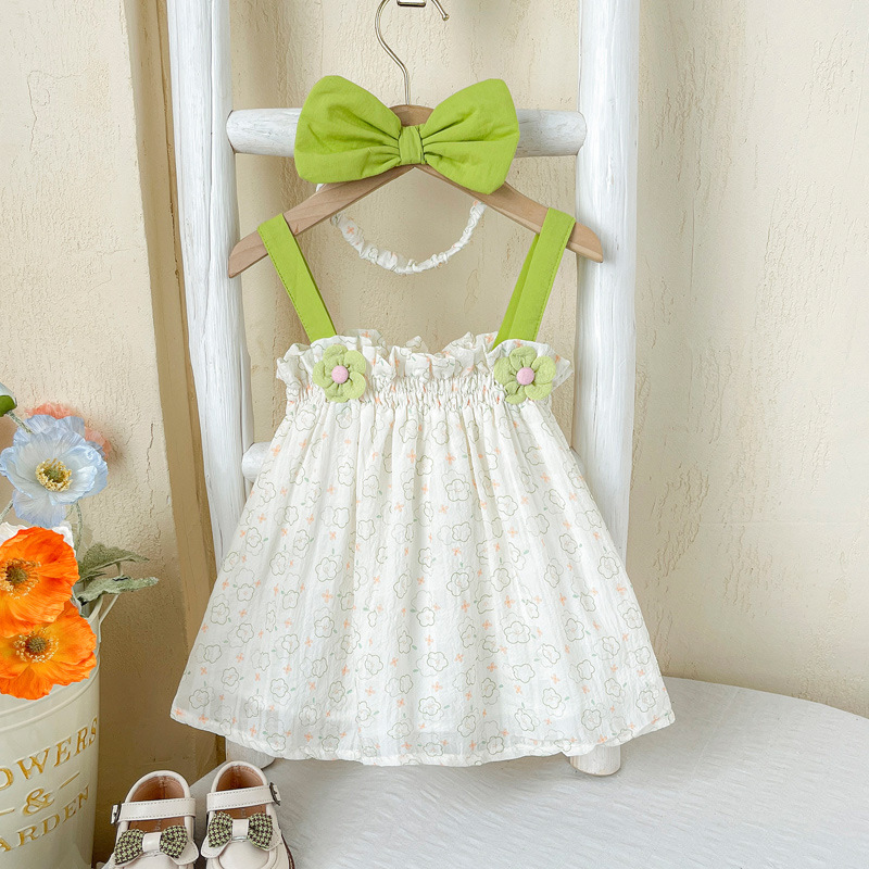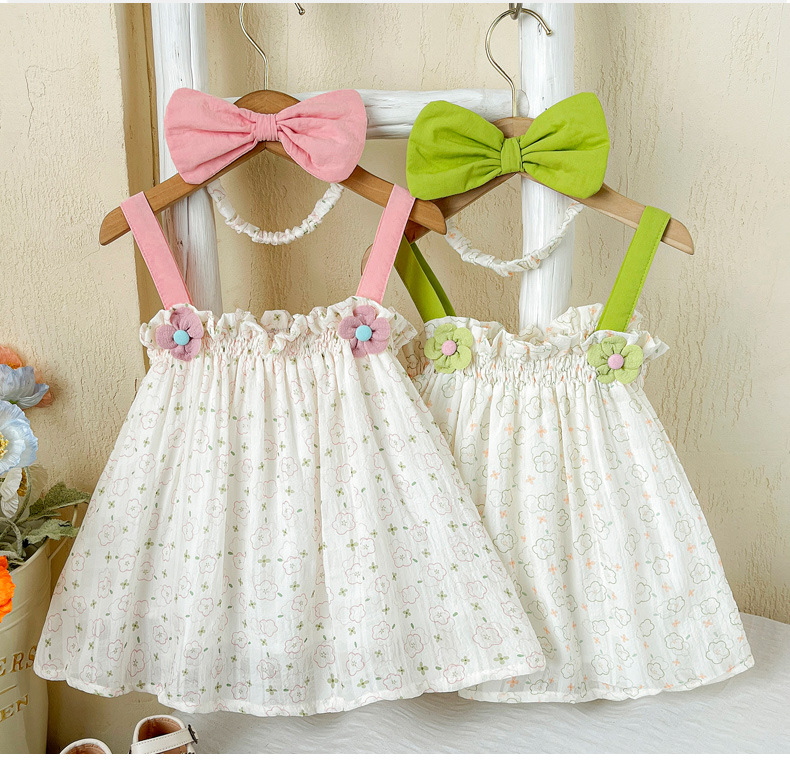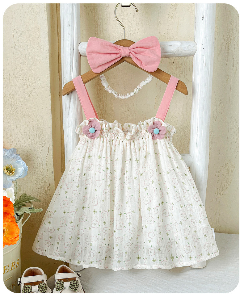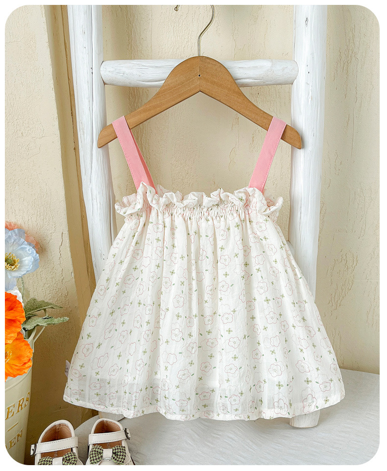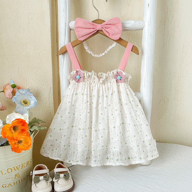 아기 여름 슬링 치마 꽃 슈퍼 귀여운 귀여운 아기 소녀 여름 면화 원피스 2025 새로운 도착