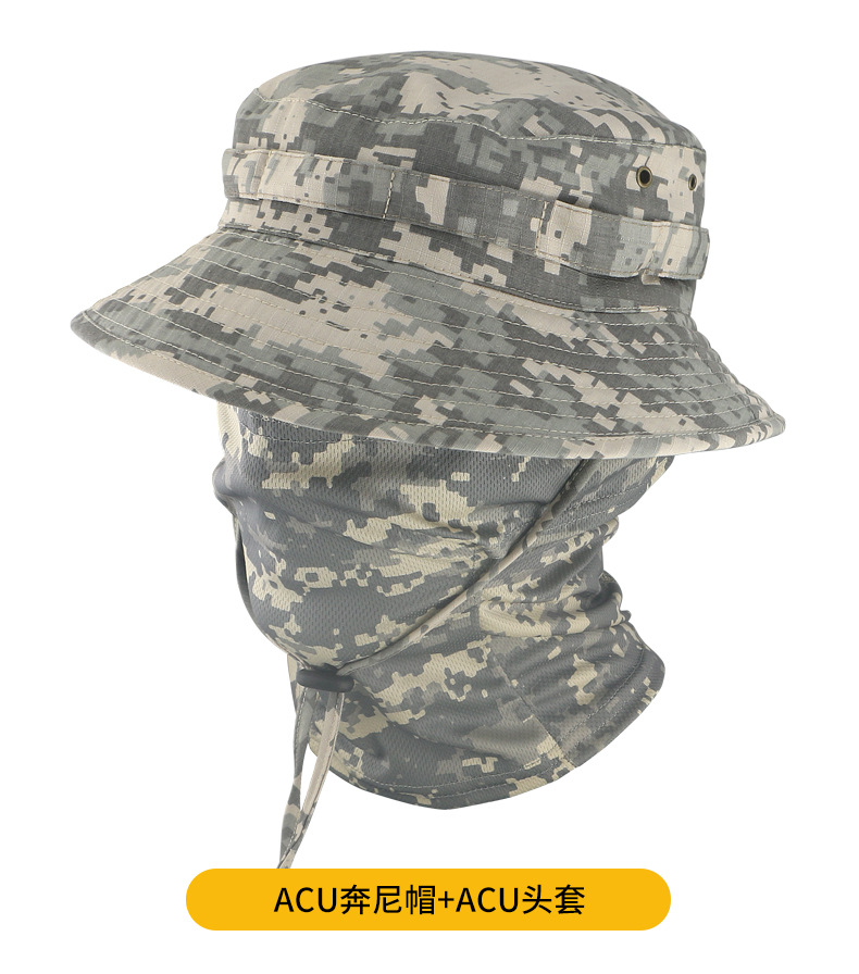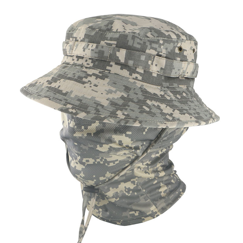 여름 양산 어부 모자 남자의 군사 팬 전술 위장 보니 모자 2 세대 둥근 모자 야외 낚시 등산 캠핑 모자