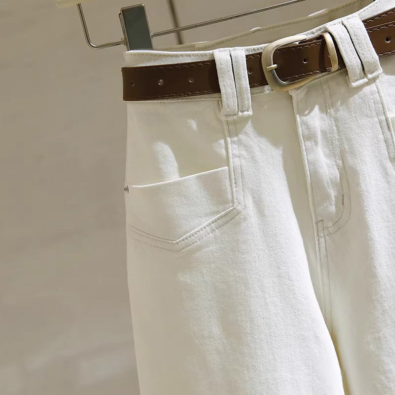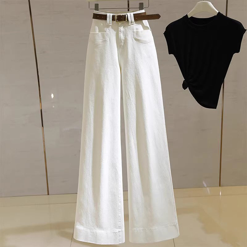 杏色高腰阔腿牛仔裤女2025春季新款宽松直筒胖mm显瘦微喇叭拖地裤