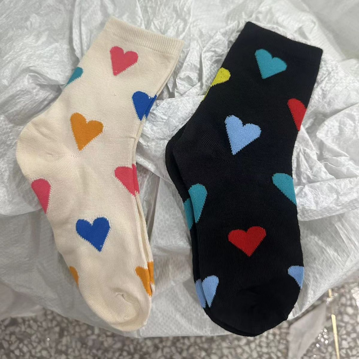 가을과 겨울 어린이를위한 새로운 사랑 양말 트렌디 한 일본 스타일 귀여운 달콤한 색 코튼 중간 길이 양말 인터넷 연예인 스타킹 스택
