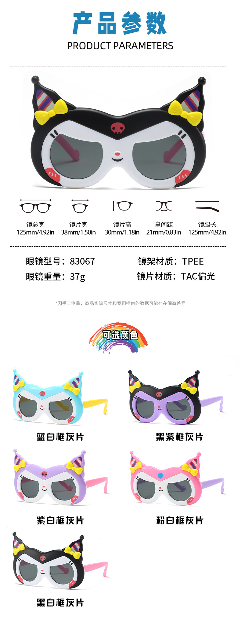 소년 소녀를위한 새로운 어린이 만화 Kulomi 실리콘 안경 선글라스 안티 UV 선글라스
